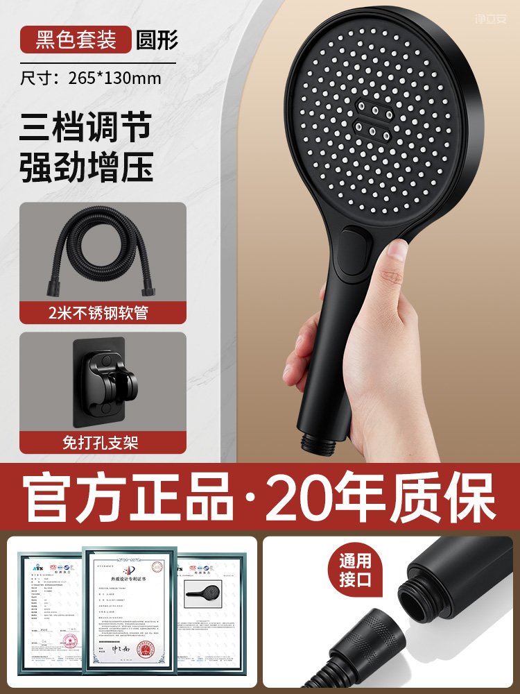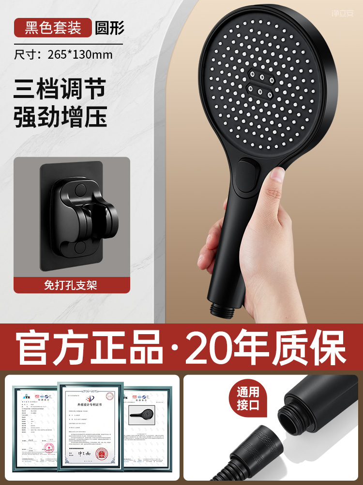 • 【우아한 블랙 세트 3】 고압 대용량 샤워기 + 무타공 거치대⚑