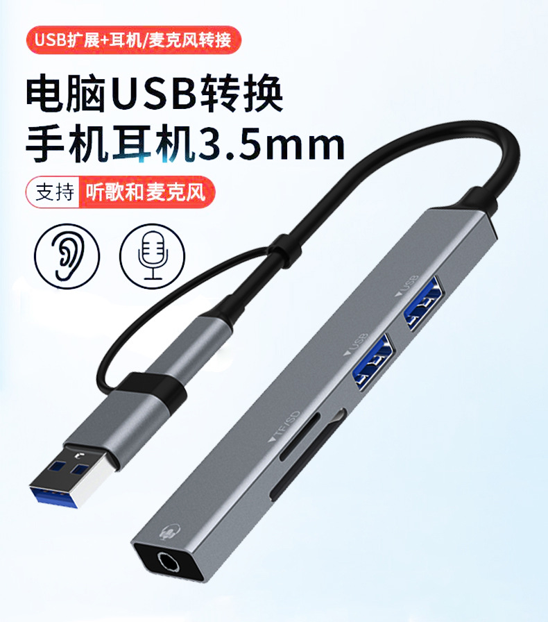 컴퓨터 휴대 전화 USB 확장 도크 typec 분배기 허브 카드 리더기 드라이버가 없는 사운드 카드 노트북 오디오 확장스토어 가기