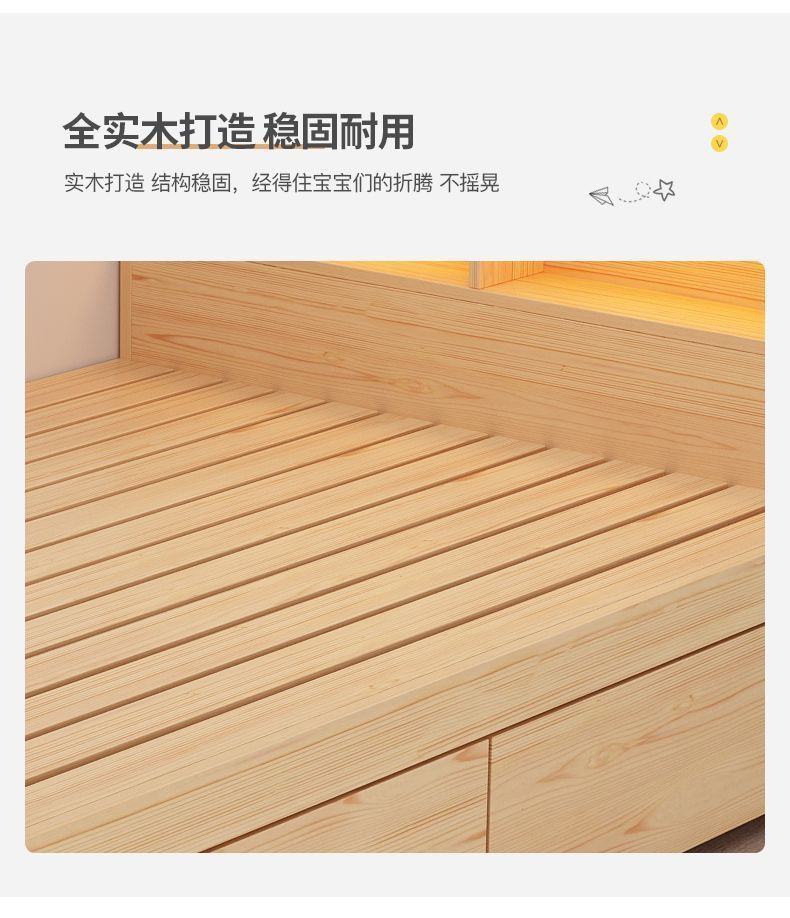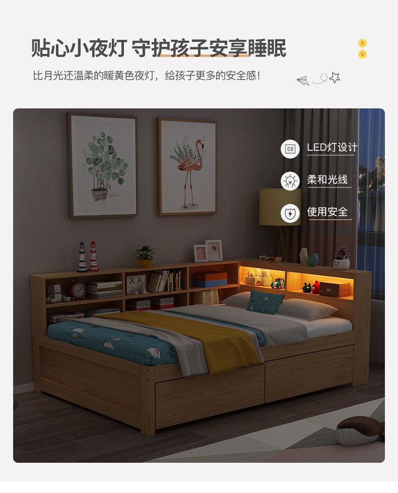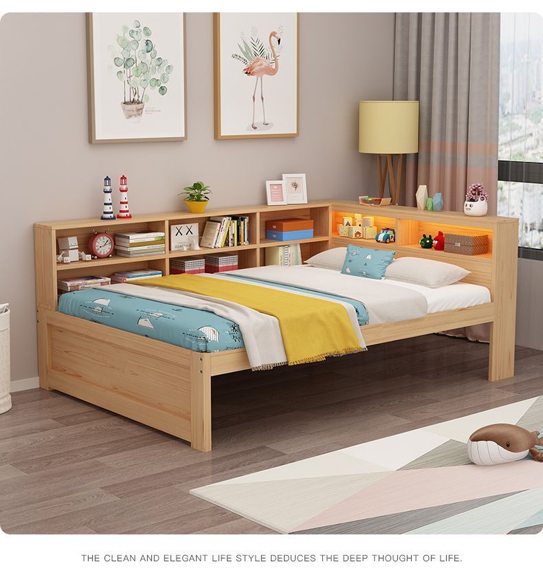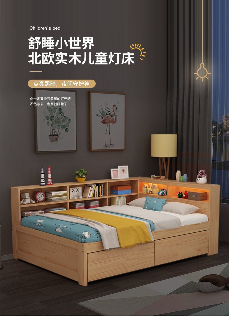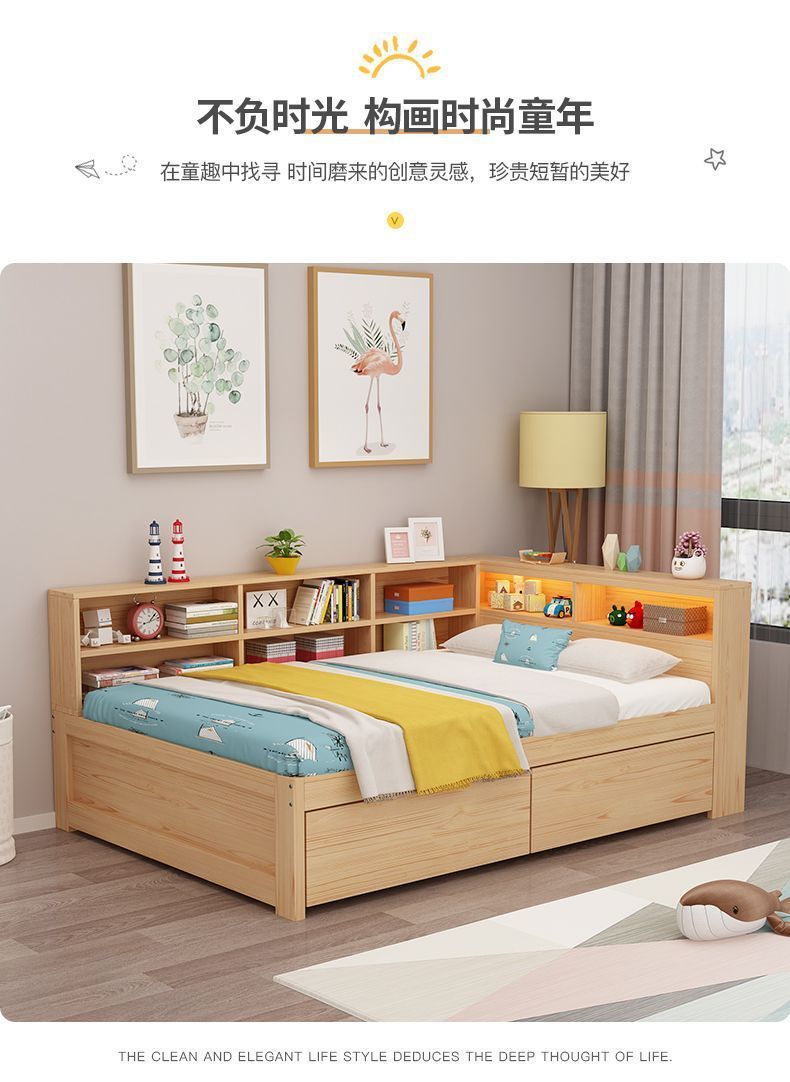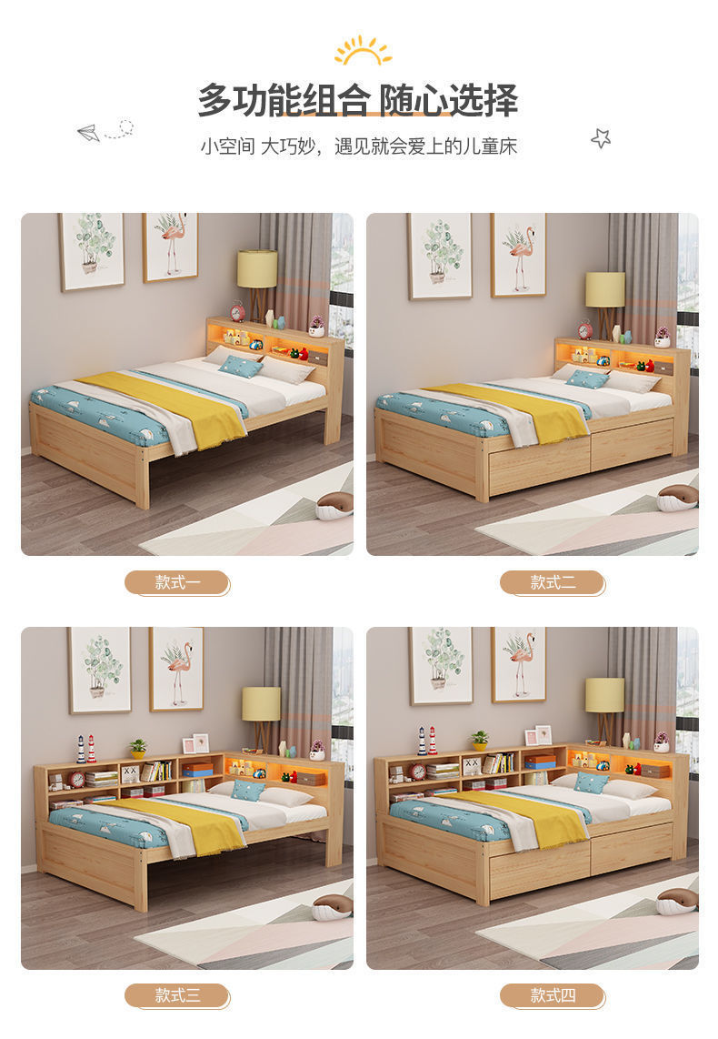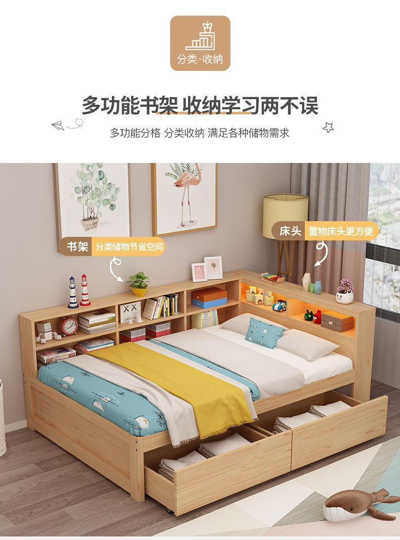 현대 간단한 더블 단단한 나무 침대 1.8 m 싱글 침대 1.5 m 어린이 침대 1 m 책장 침대 통합 다기능스토어 가기