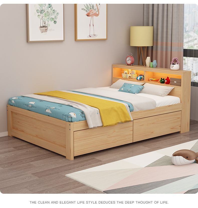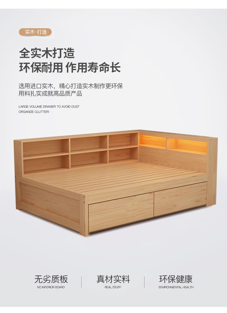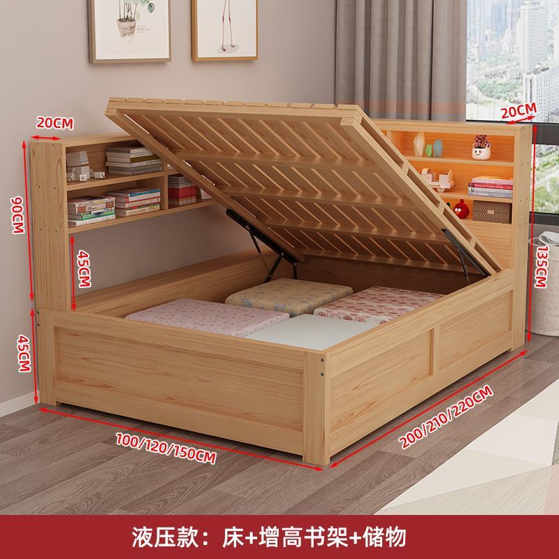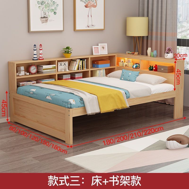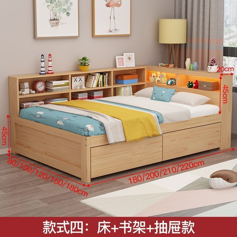 현대 간단한 더블 단단한 나무 침대 1.8 m 싱글 침대 1.5 m 어린이 침대 1 m 책장 침대 통합 다기능
