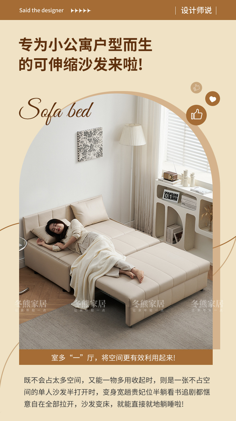 겨울곰 모던 심플 접이식 소파 겸용 발코니 소형 거실용 확장형 다기능 수납 소파베드