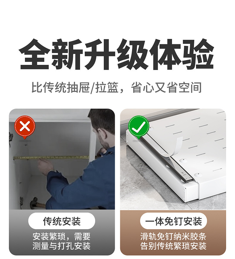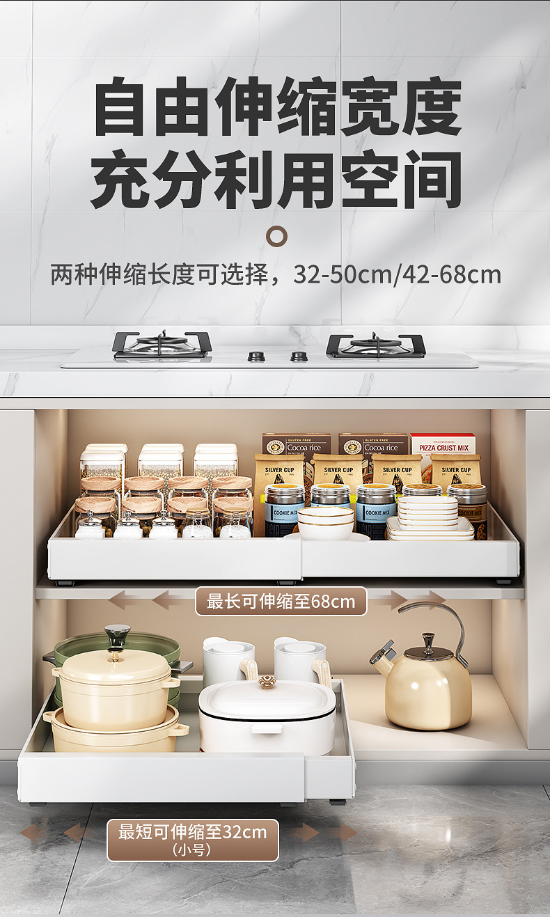 구멍이 없는 접이식 캐비닛 바구니, 싱크대 아래 풀아웃 수납 선반, 서랍, 그릇 바구니, 주방 수납용품