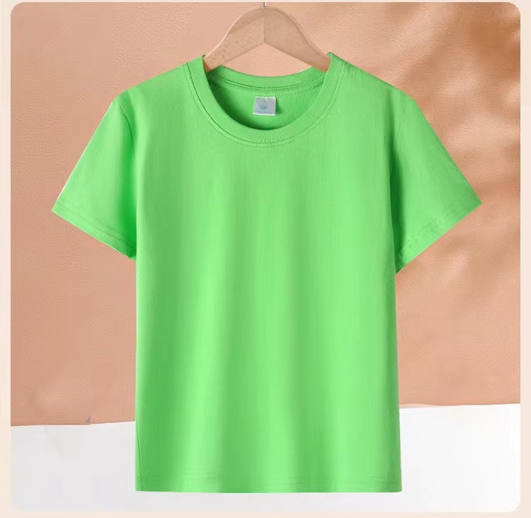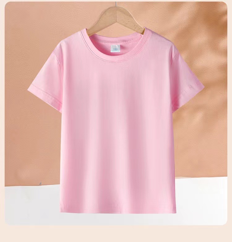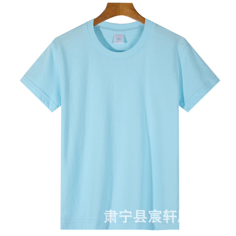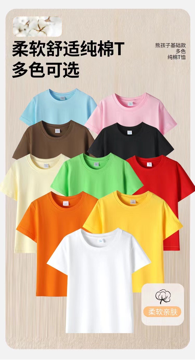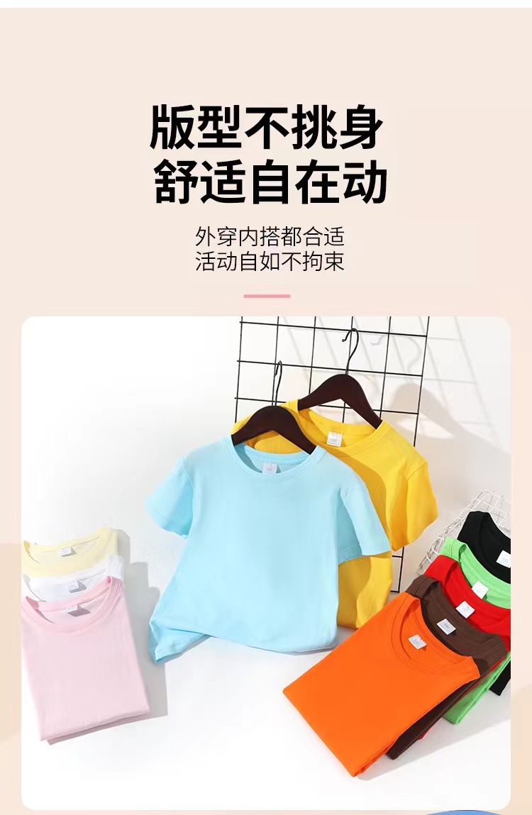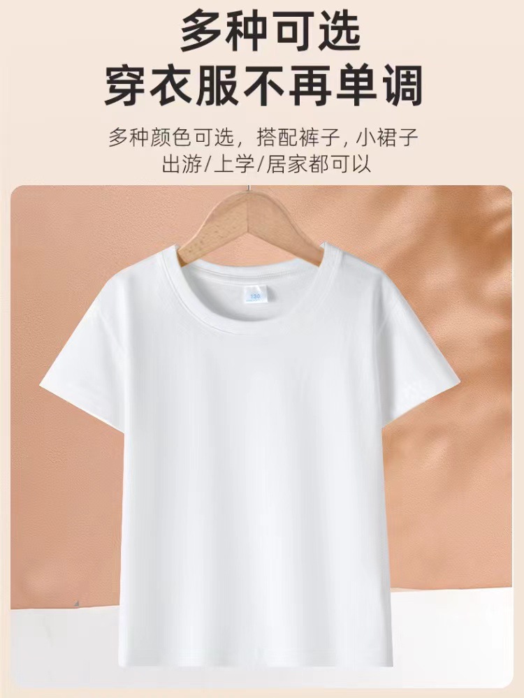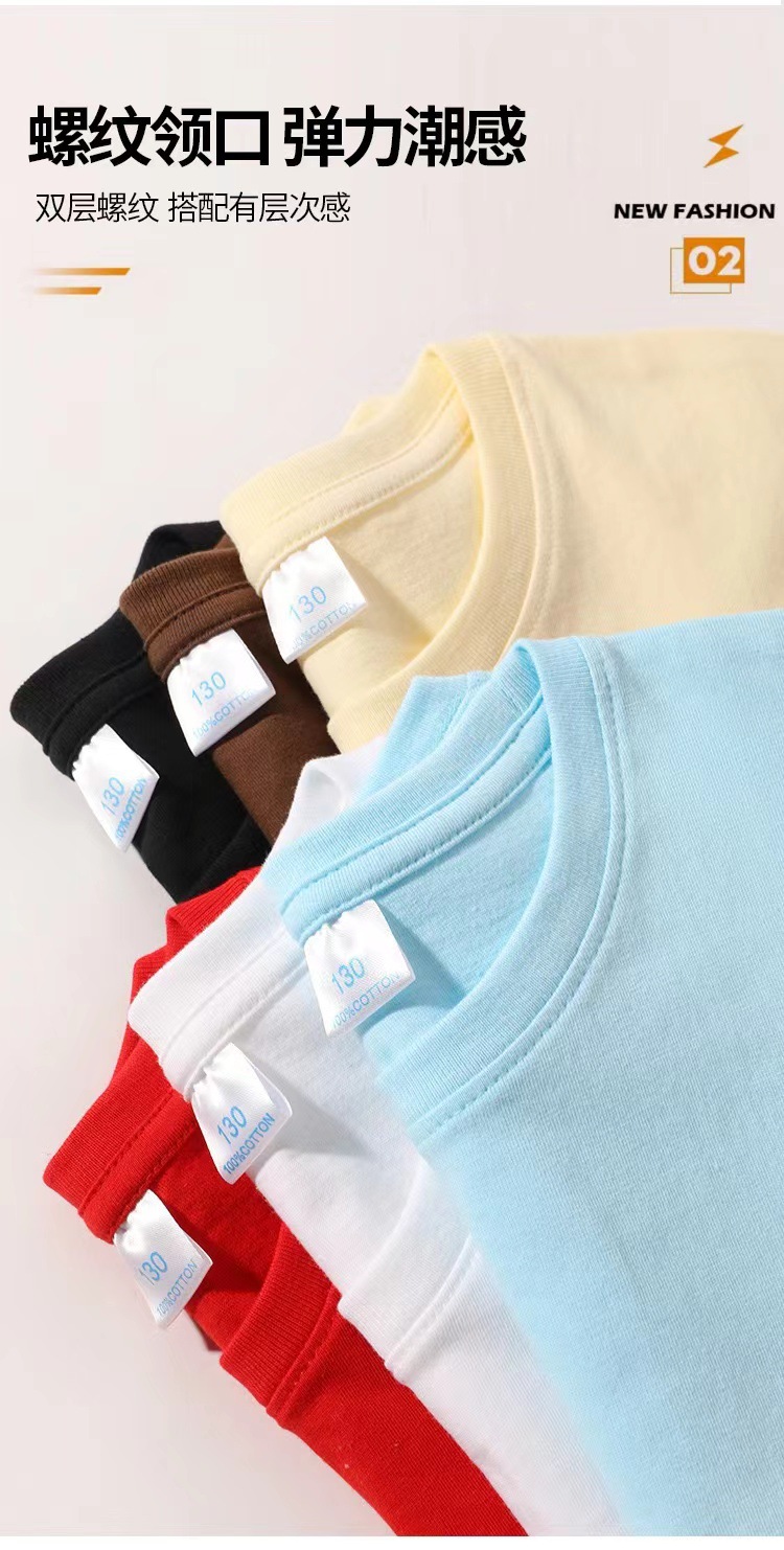 2024 어린이 반팔 티셔츠 순면 소년 소녀 단색 기본 둥근 목 티셔츠 클래스 의류 활동 의류 도매스토어 가기