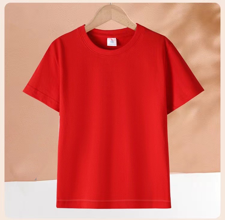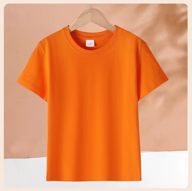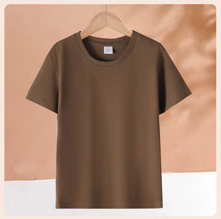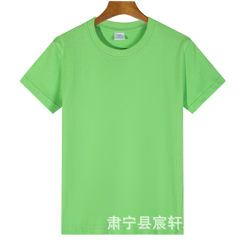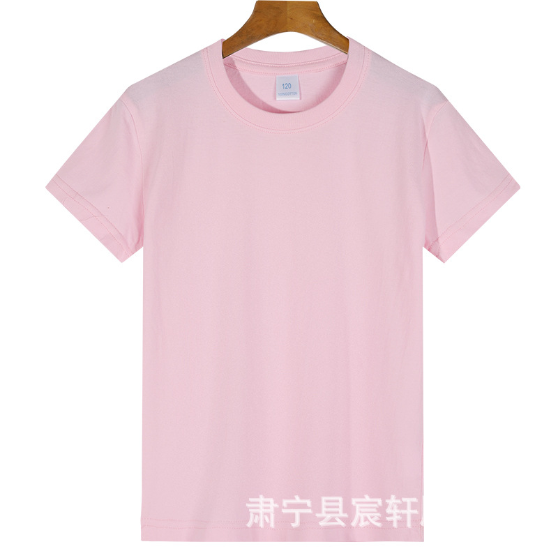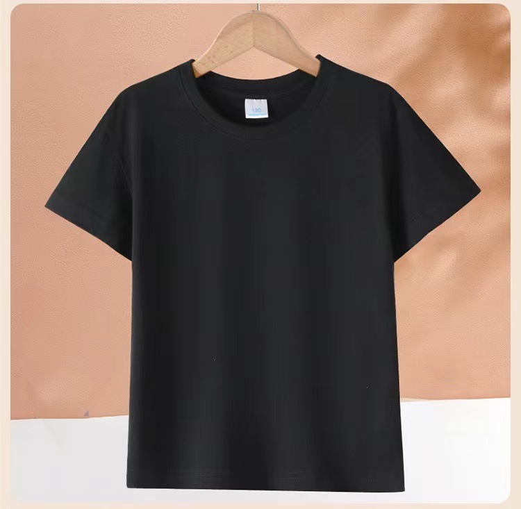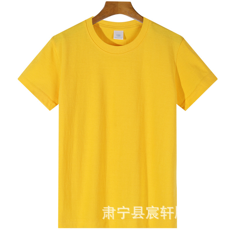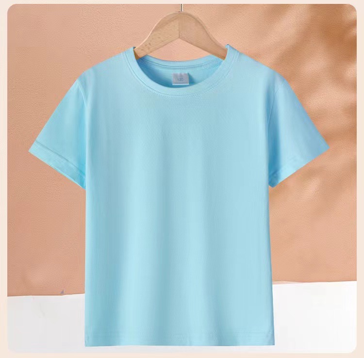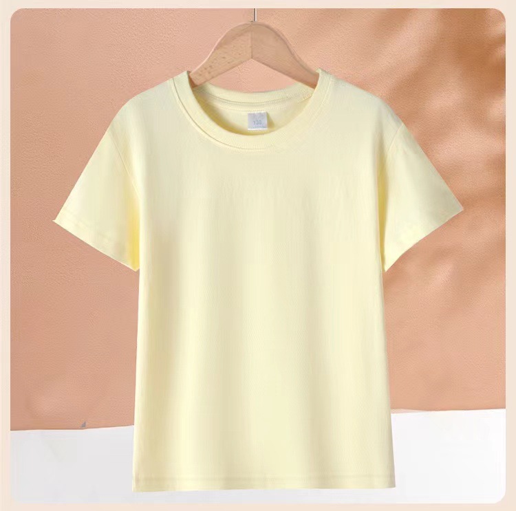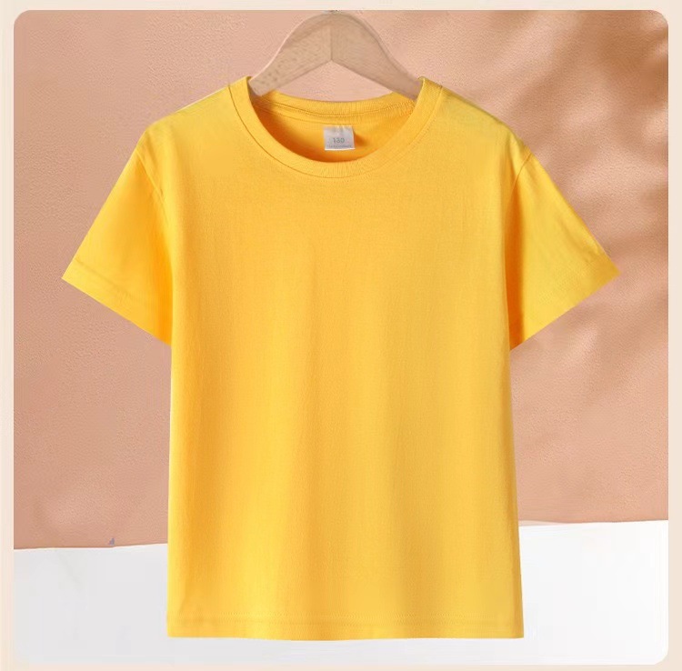 2024 어린이 반팔 티셔츠 순면 소년 소녀 단색 기본 둥근 목 티셔츠 클래스 의류 활동 의류 도매스토어 가기