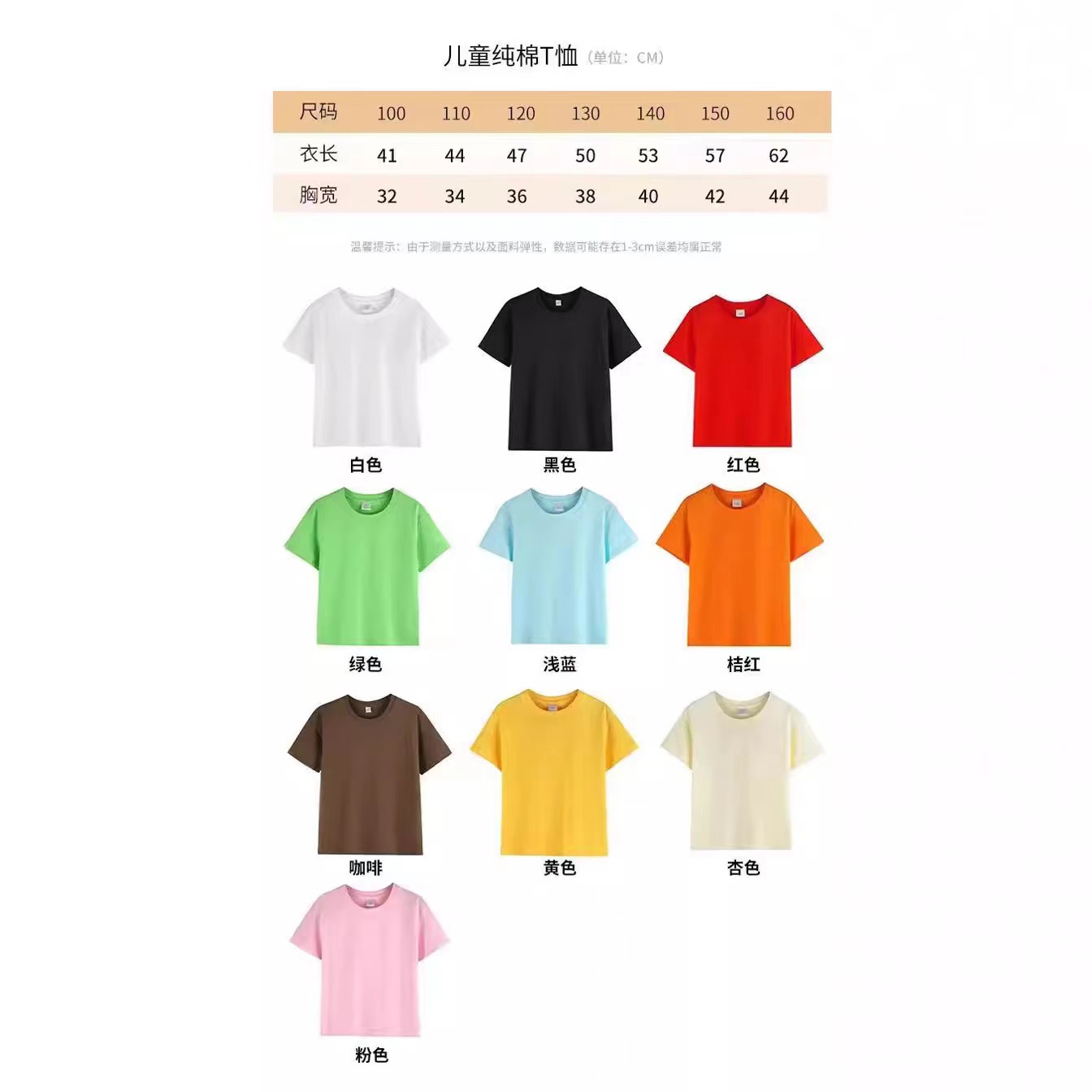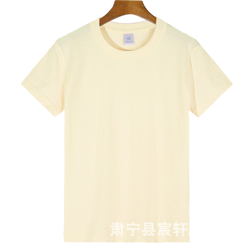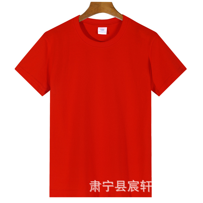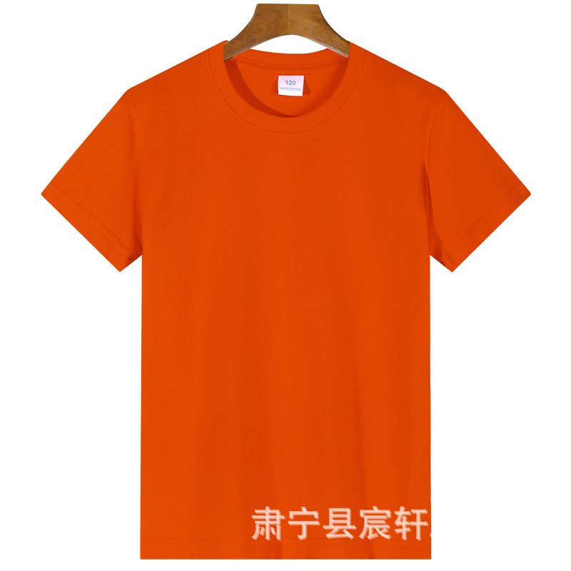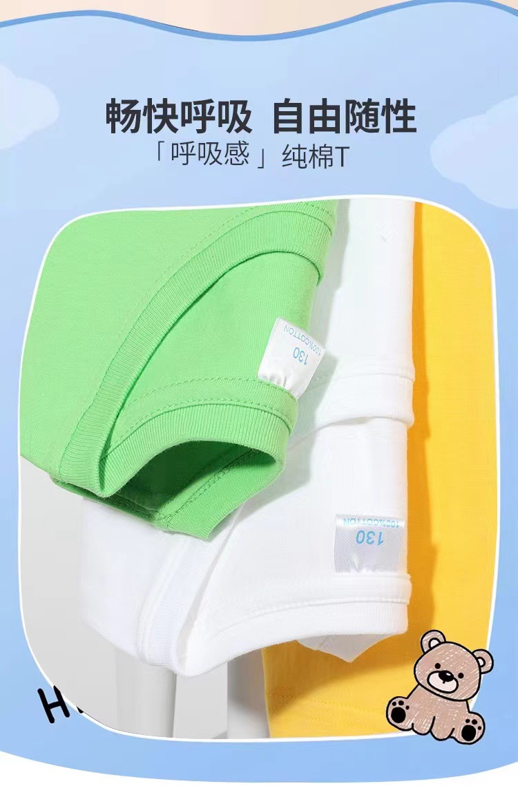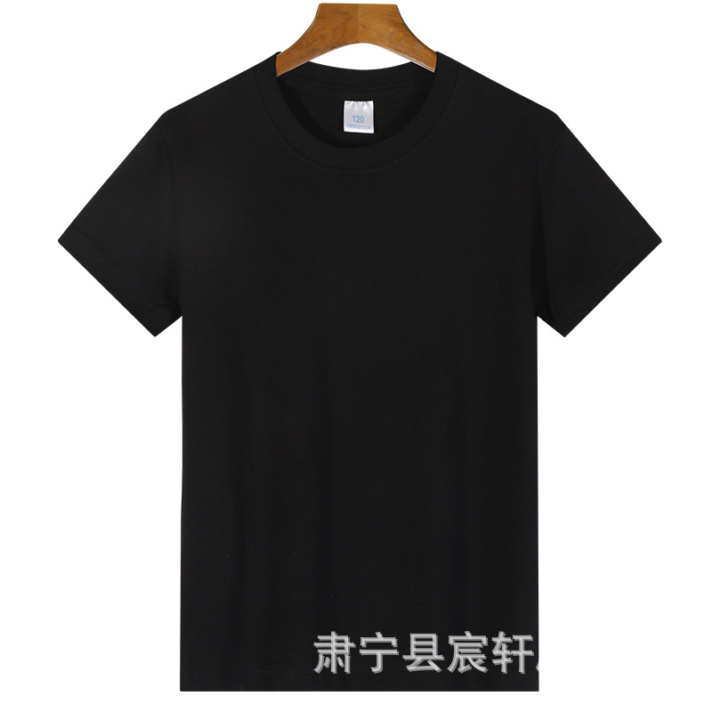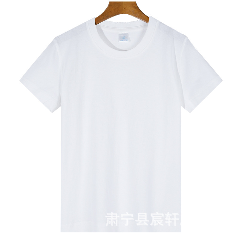 2024 어린이 반팔 티셔츠 순면 소년 소녀 단색 기본 둥근 목 티셔츠 클래스 의류 활동 의류 도매스토어 가기