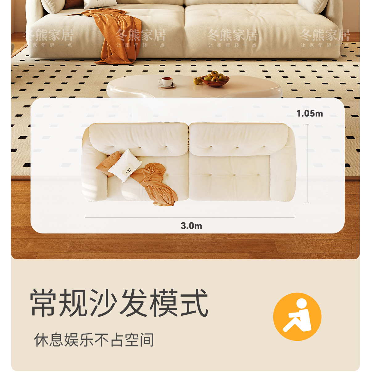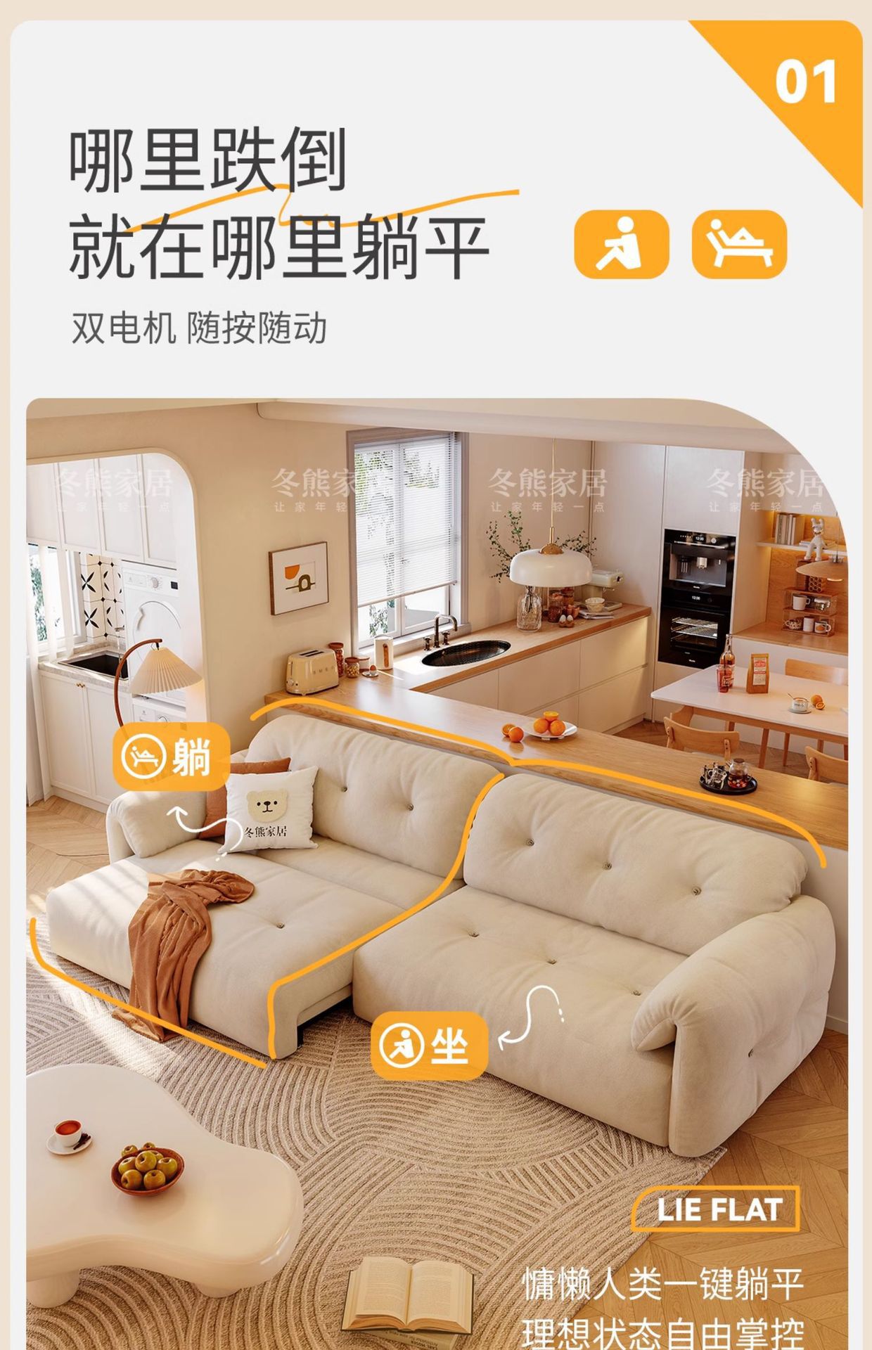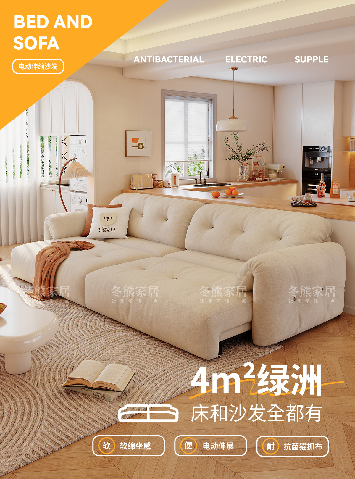 Foshan Yunduo 전동 소파 거실 심플 모던 접이식 크림 스타일 소형 가정용 패브릭 다기능 소파 베드스토어 가기