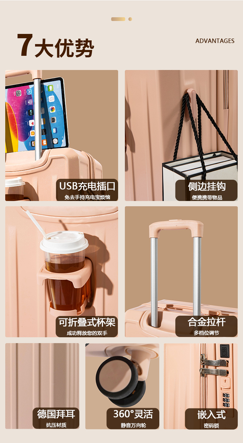 수하물 다기능 지퍼 트롤리 케이스 24 인치 여성 가방 26 대용량 암호 상자 20 인치 탑승 상자스토어 가기