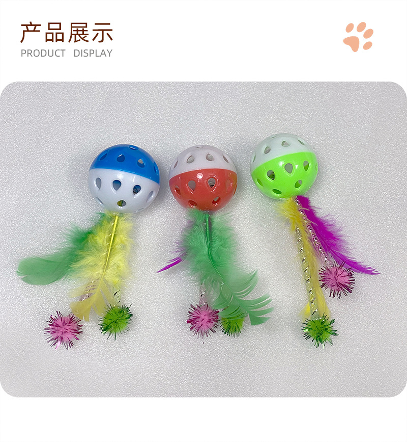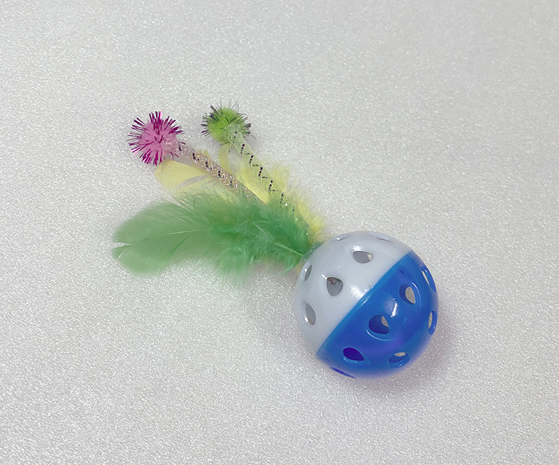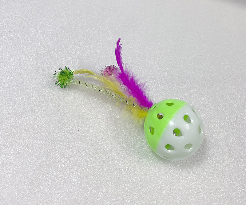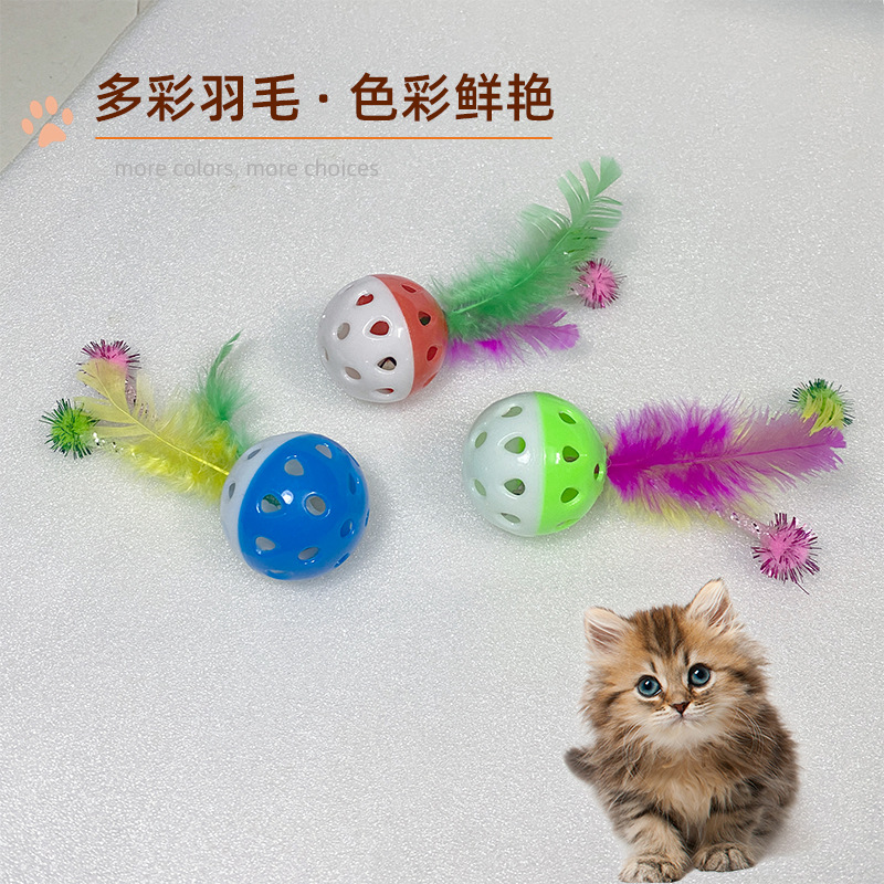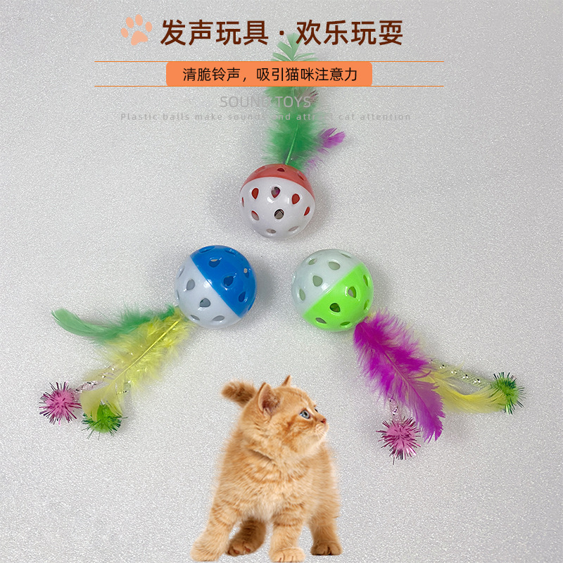 도매 고양이 장난감 깃털 벨 공 고양이 소리 장난감 재미있는 고양이 공 재미있는 컬러 플라스틱 공스토어 가기