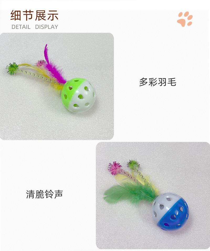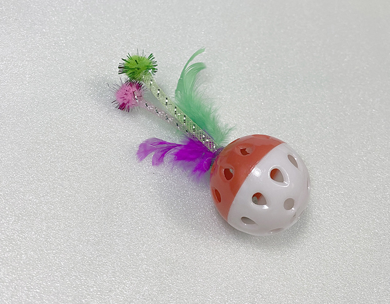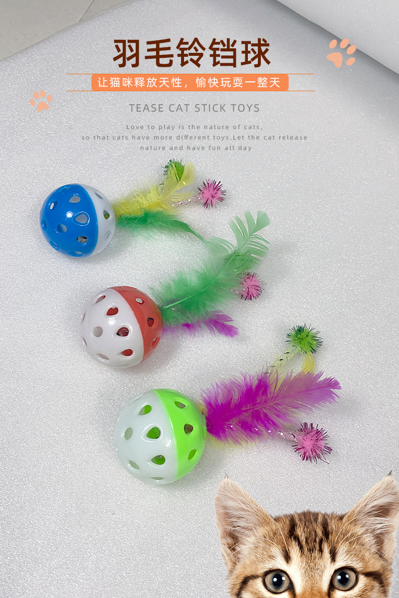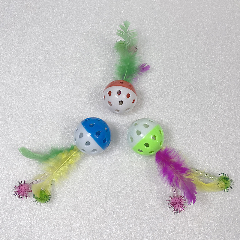 도매 고양이 장난감 깃털 벨 공 고양이 소리 장난감 재미있는 고양이 공 재미있는 컬러 플라스틱 공