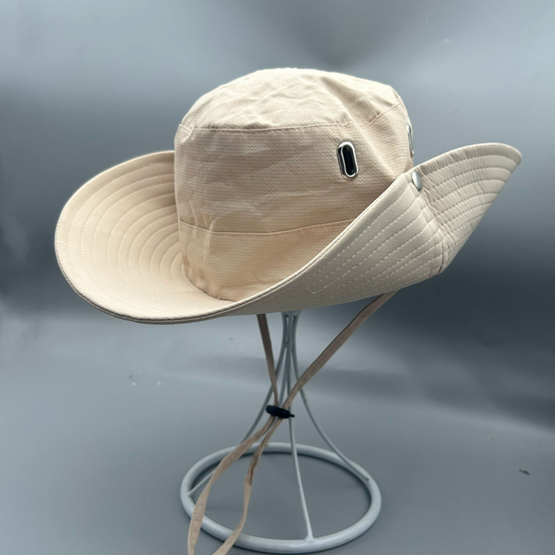 자외선 차단 모자, 야외 낚시, 등산, 서부 카우보이 모자, 남성 여름 휴가용, 챙이 넓은 조절끈 낚시꾼 모자, 성인용
