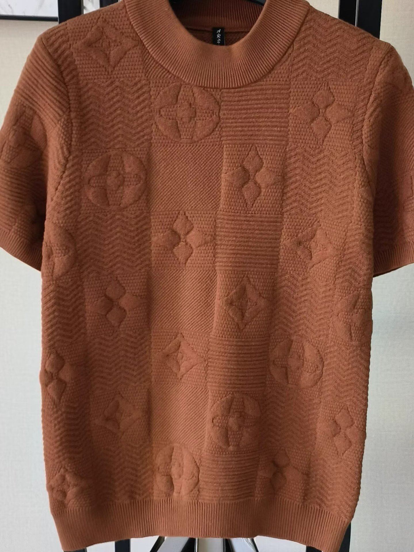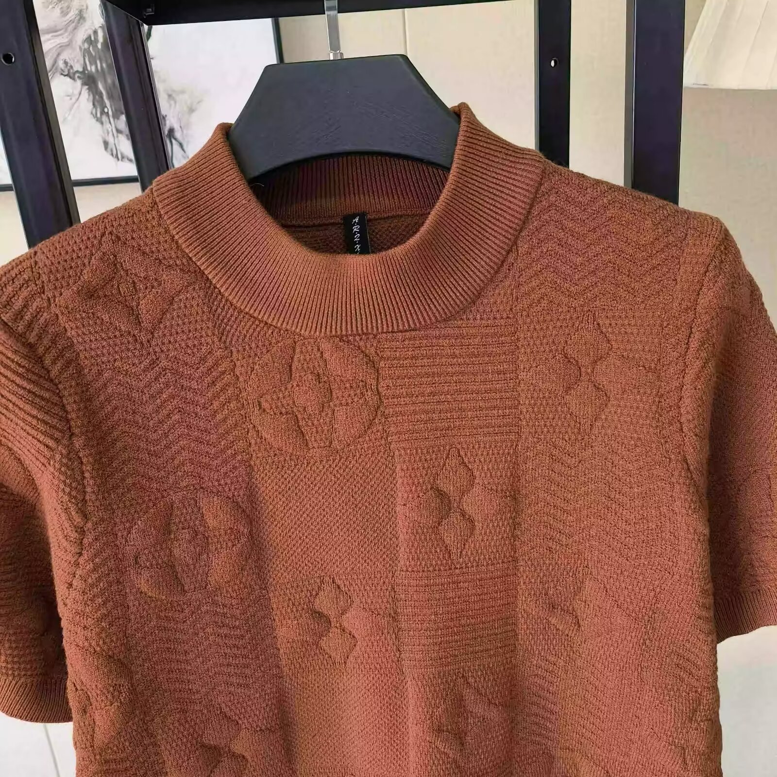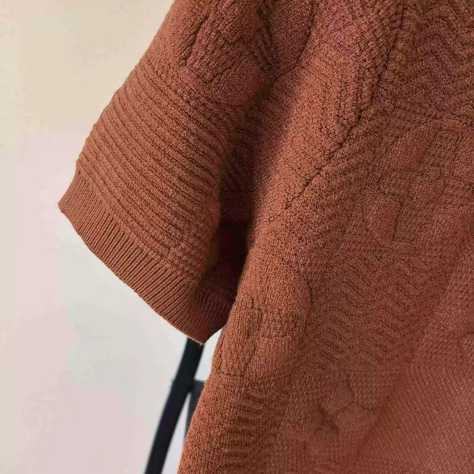 커피 반팔 스웨터 남성용 여름 트렌디 브랜드 라운드 넥 슬림 핏 자카드 반소매 스웨터 라이트 럭셔리 솔리드 컬러 탑스토어 가기