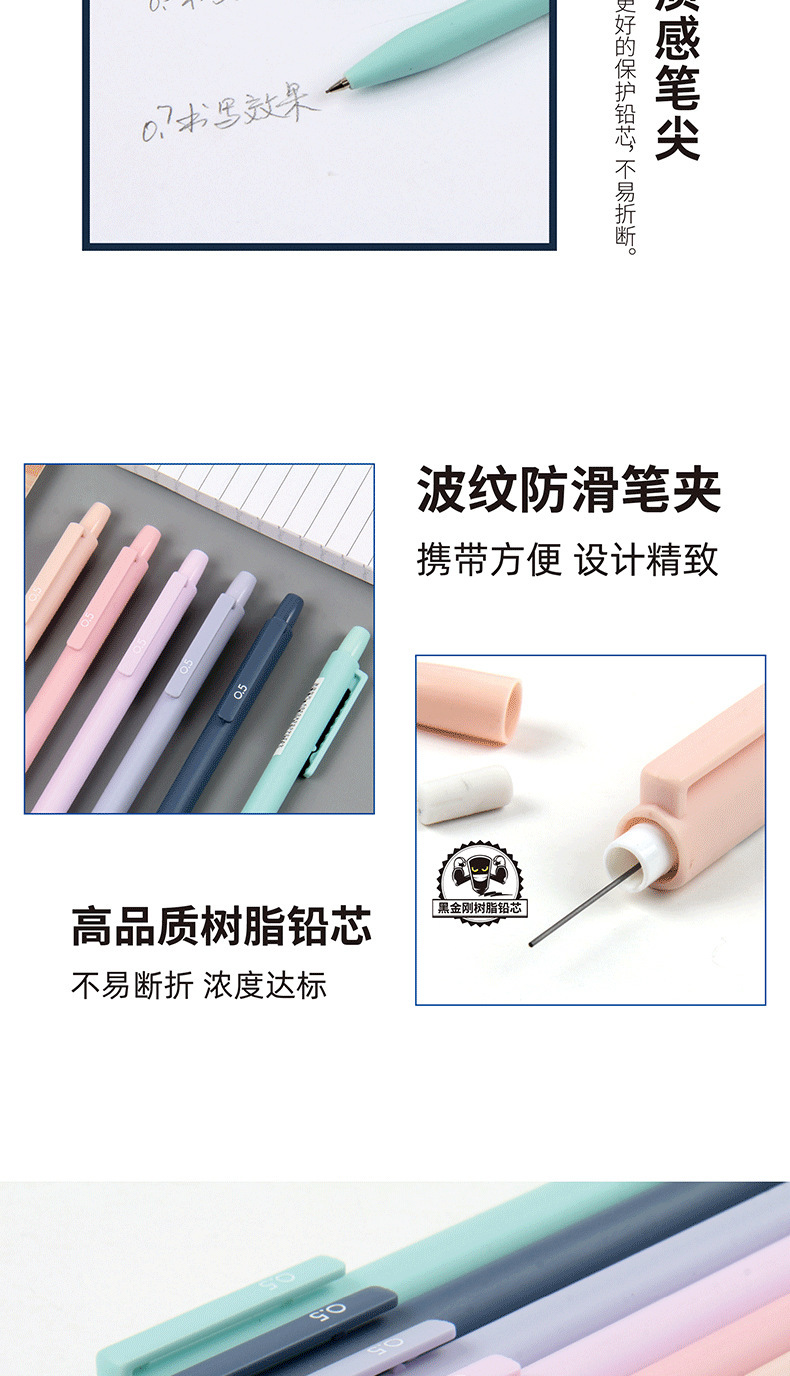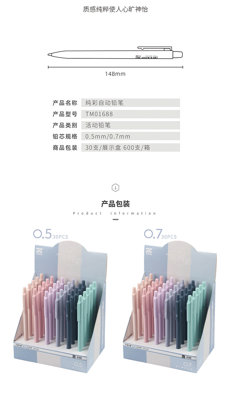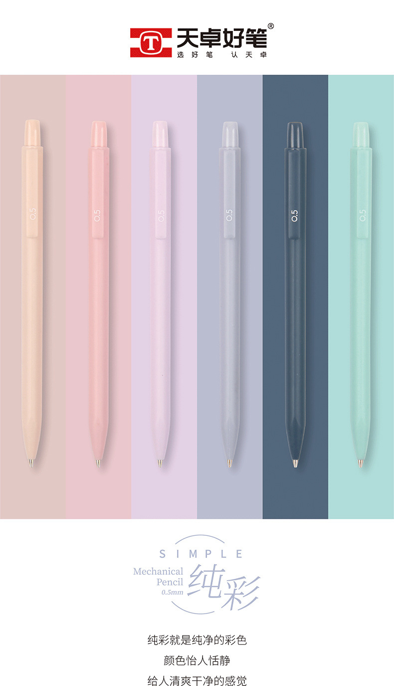 전자 상거래 Tianzhuo 01688 Morandi 자동 연필 순수 색상 간단한 삼각형 포즈 펜 0.5/0.7 리드스토어 가기