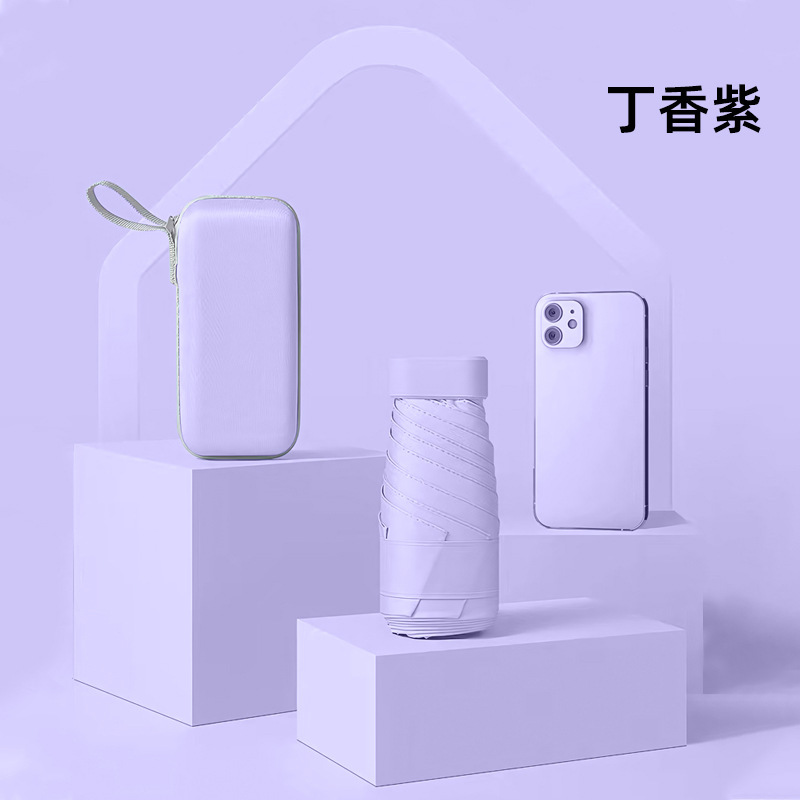 • 라일락 보라색 6 뼈 [플랫 하프 폴드 미니 우산] 캡슐 상자