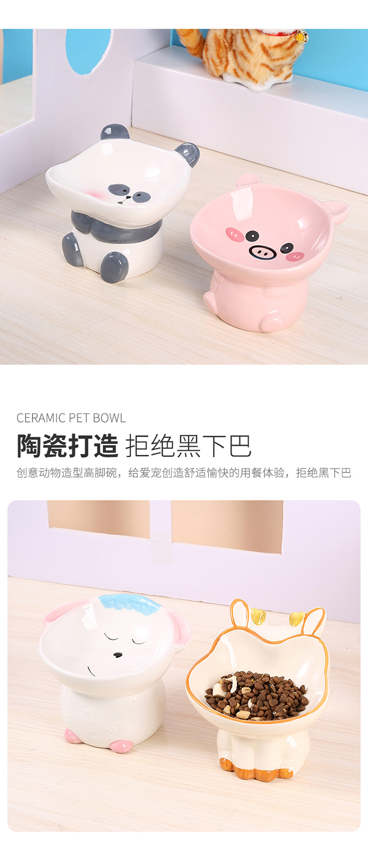 창조적 인 세라믹 애완 동물 그릇 만화 그린 큰 그릇 입 목 보호 검은 턱 물 음식 고양이 그릇 다목적스토어 가기