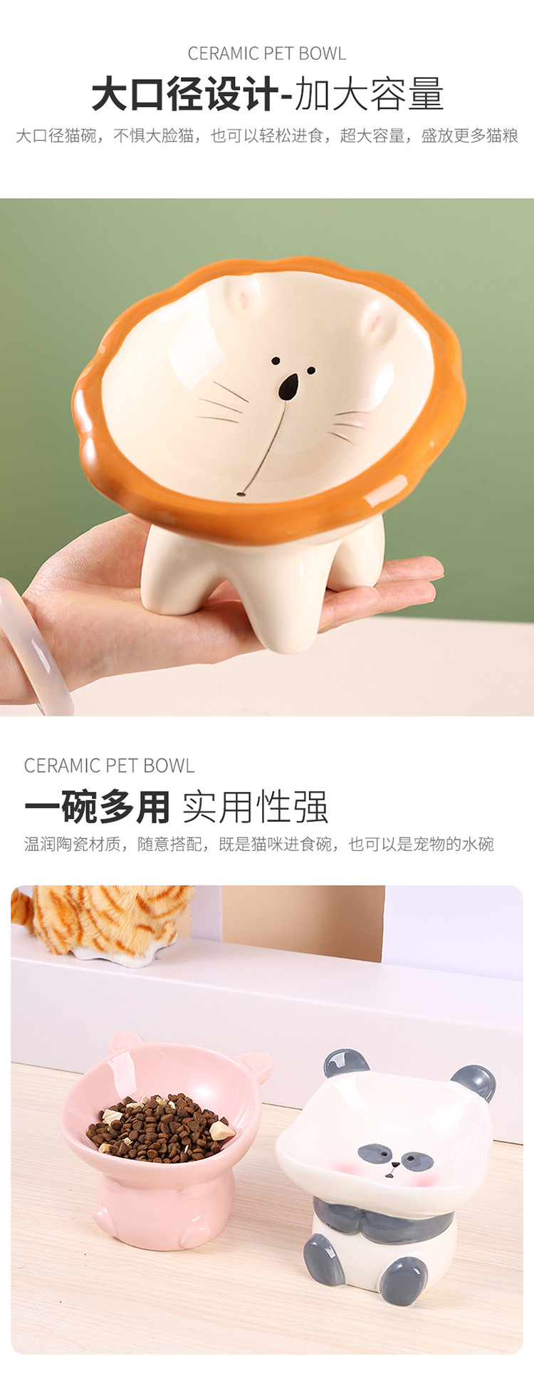 창조적 인 세라믹 애완 동물 그릇 만화 그린 큰 그릇 입 목 보호 검은 턱 물 음식 고양이 그릇 다목적