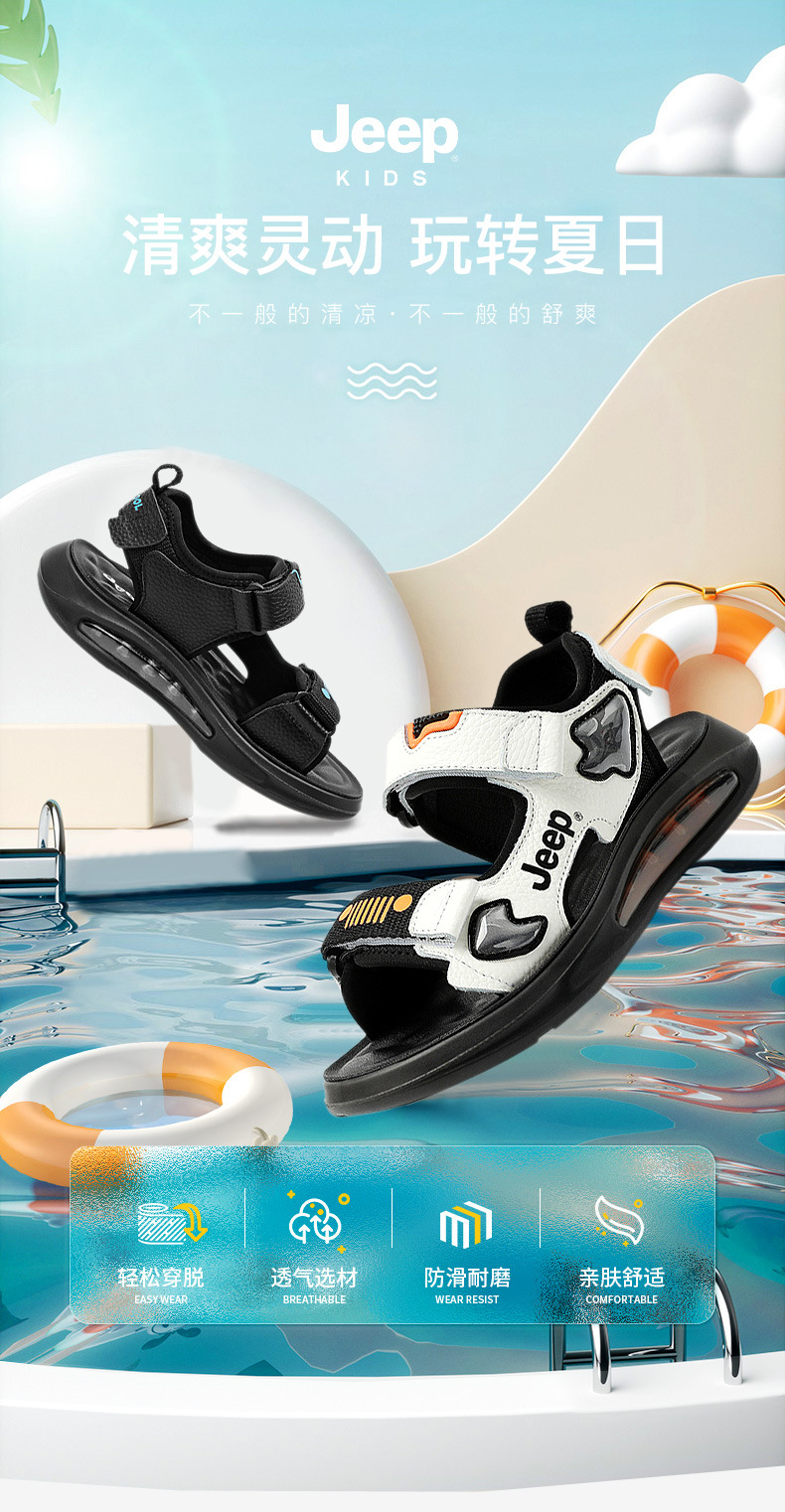 지프 어린이 샌들 새 여름 미끄럼 통기성 소년 스포츠 어린이 신발 2024 여름 소녀 비치 슈즈스토어 가기