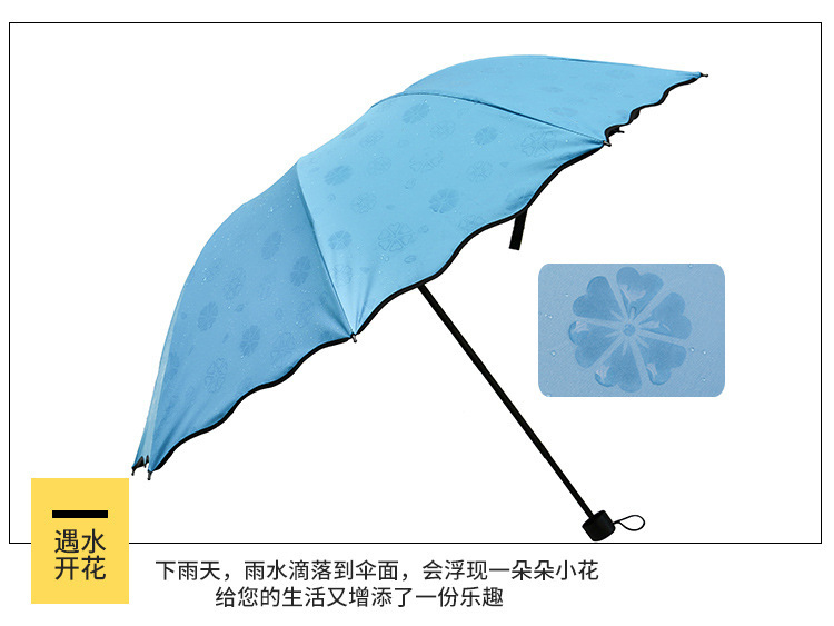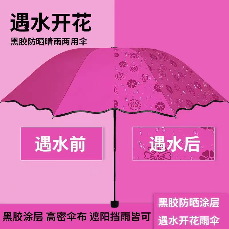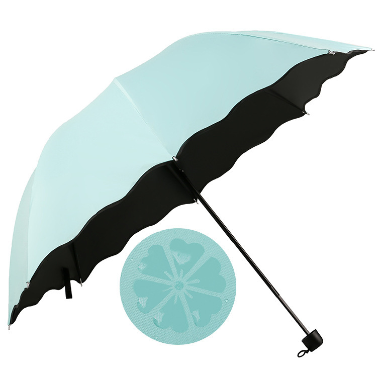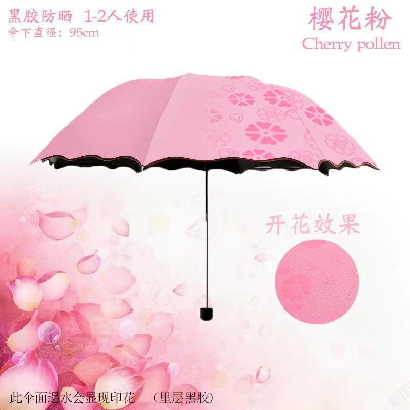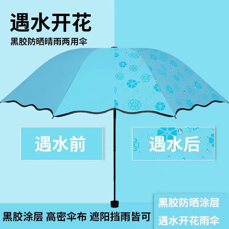 물에 노출 된 꽃 우산 여성의 자외선 차단제는 검은 색 고무 맑고 비 이중 사용 태양 우산 접이식 3 배 우산 공장 도매스토어 가기