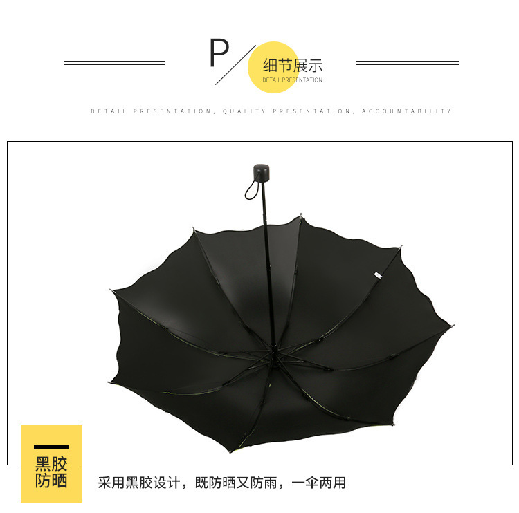 물에 노출 된 꽃 우산 여성의 자외선 차단제는 검은 색 고무 맑고 비 이중 사용 태양 우산 접이식 3 배 우산 공장 도매
