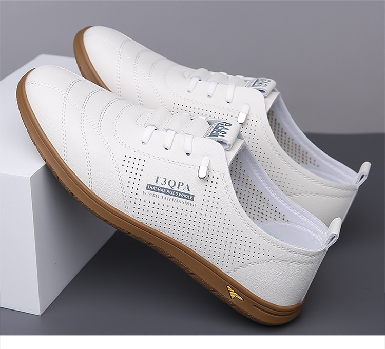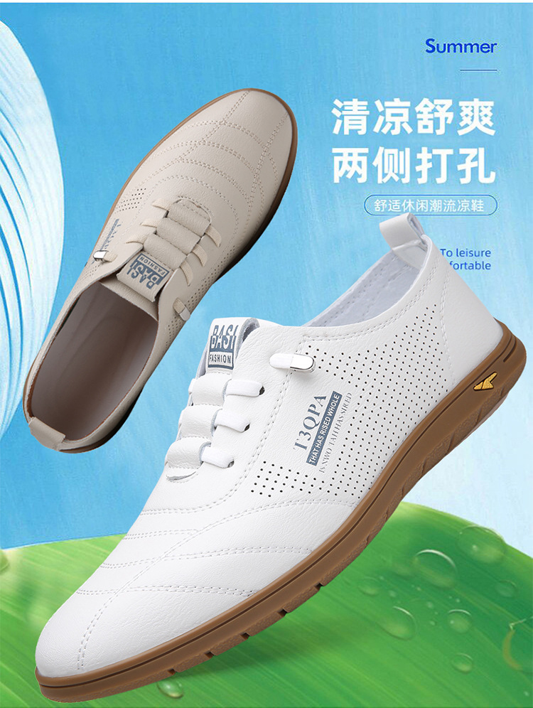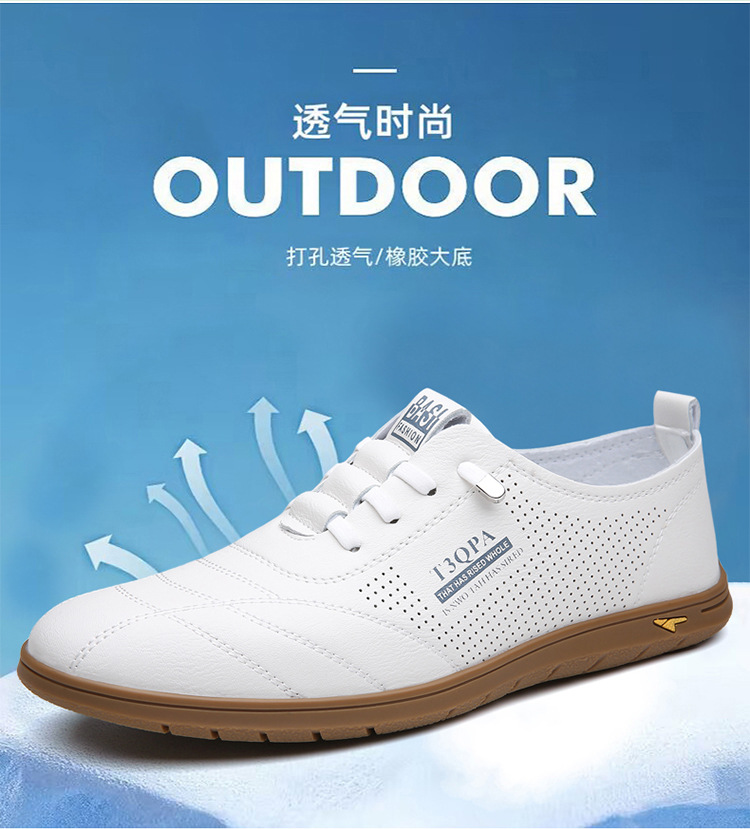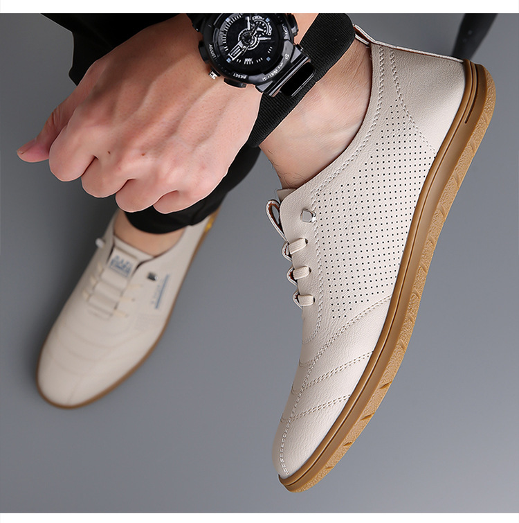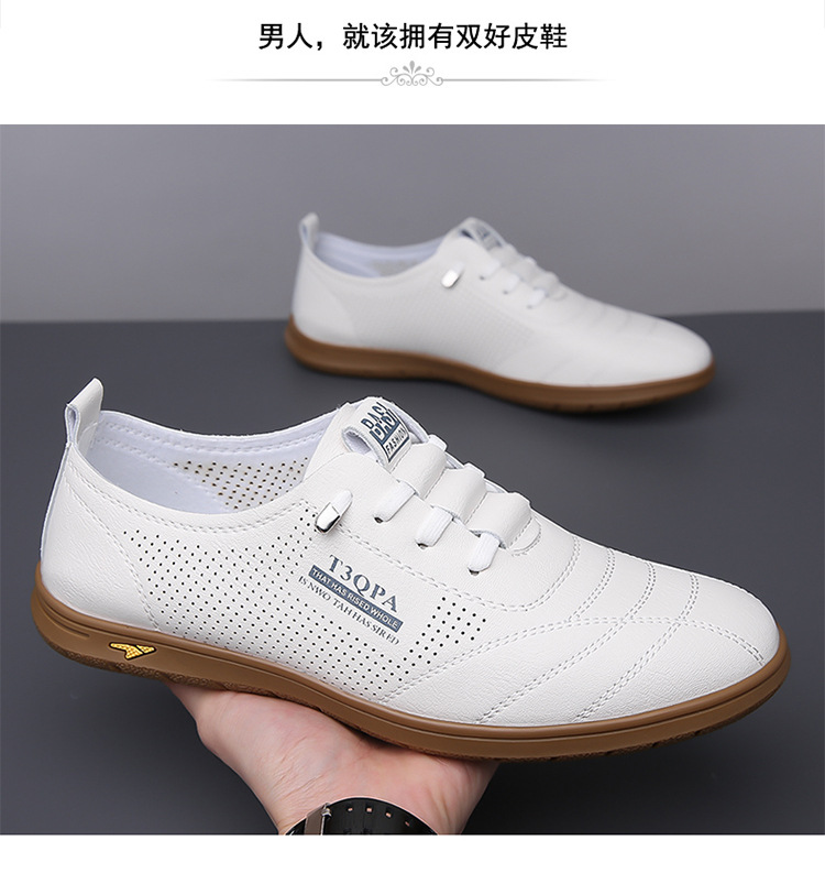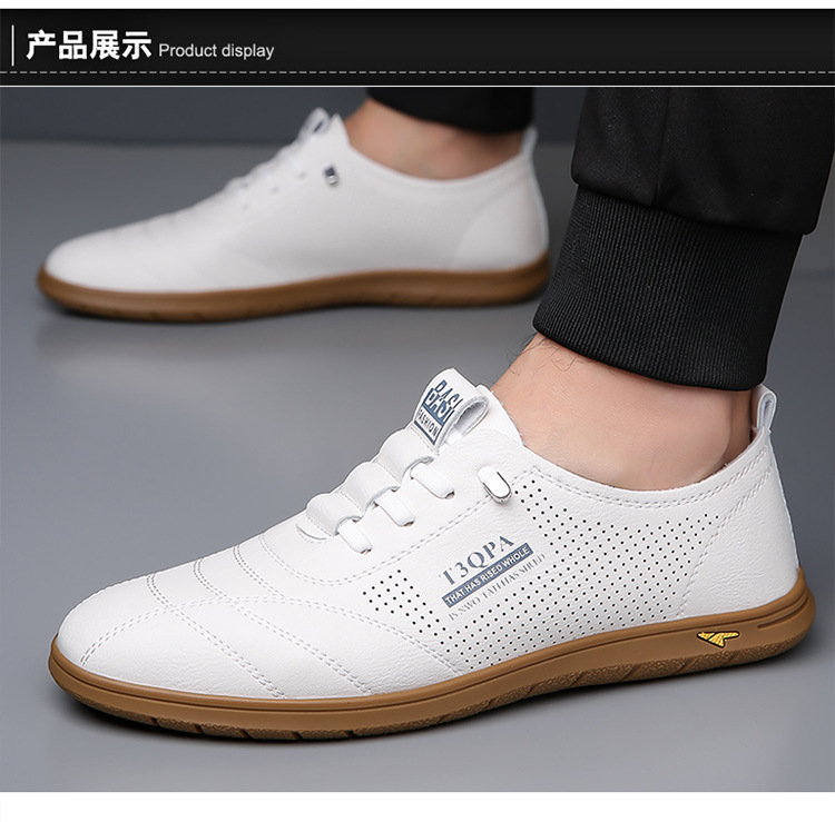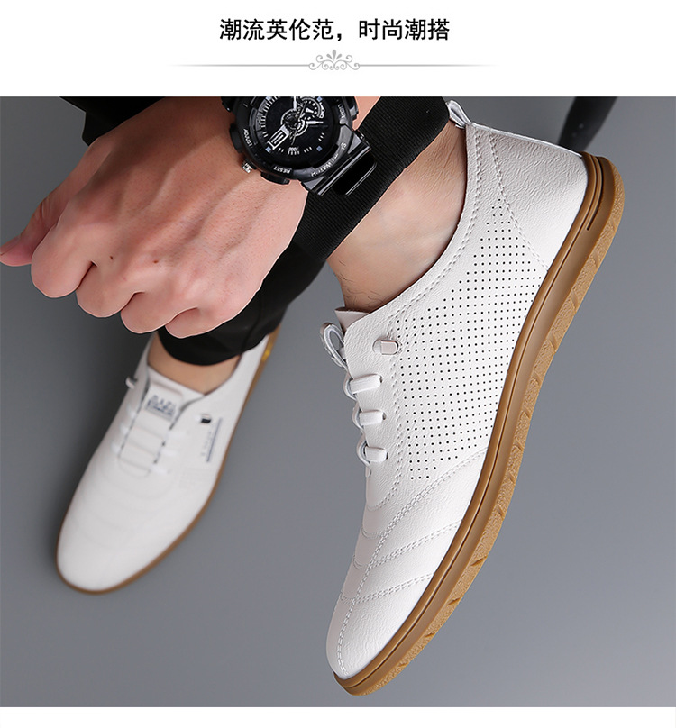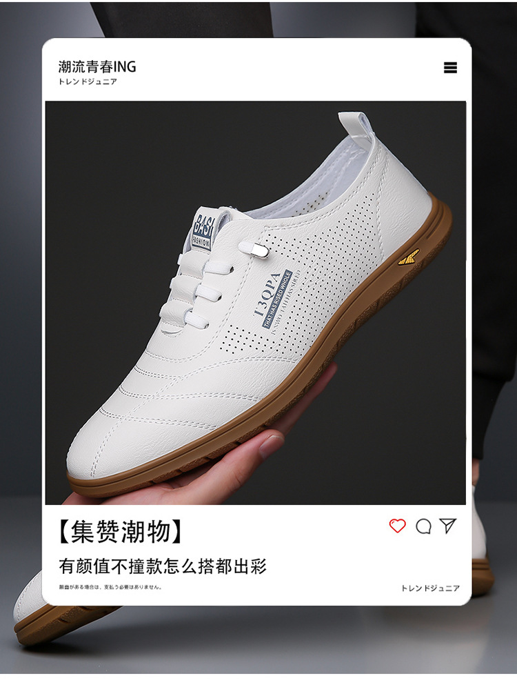 흰색 신발 2025 새로운 여름 패션 다목적 유행 슬립 온 중공 통기성 남성 운전 캐주얼 가죽 신발스토어 가기
