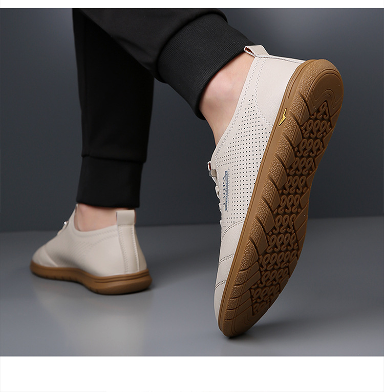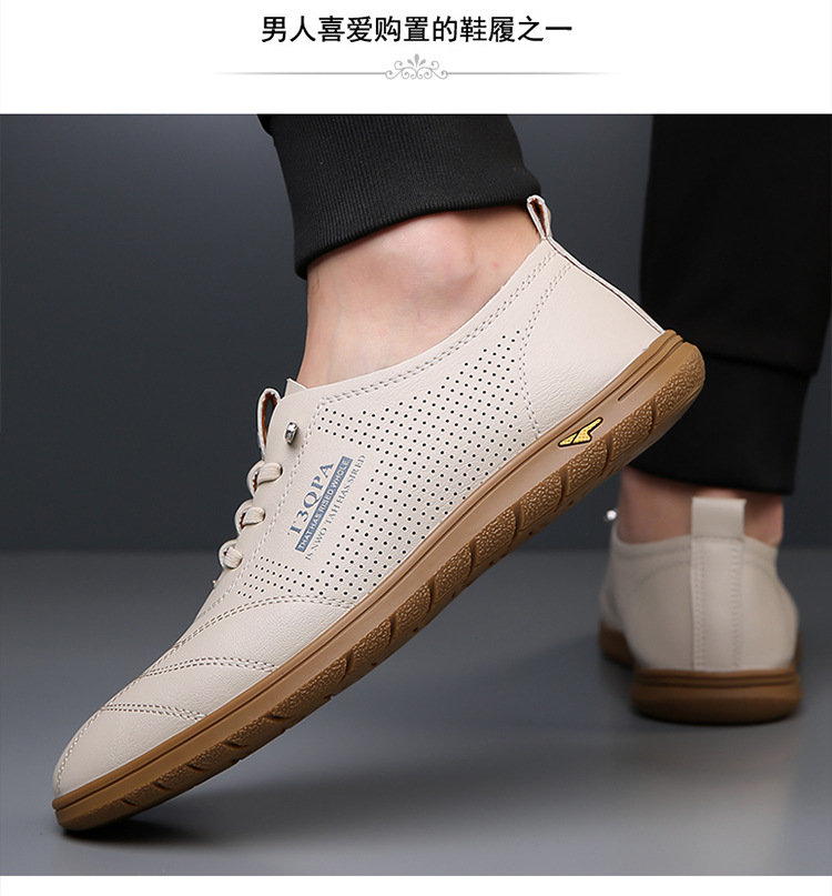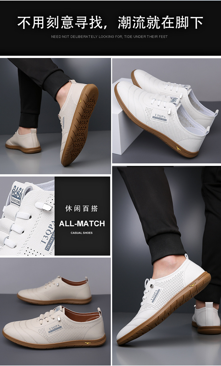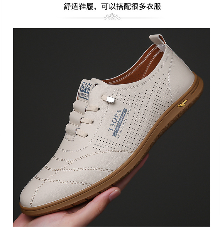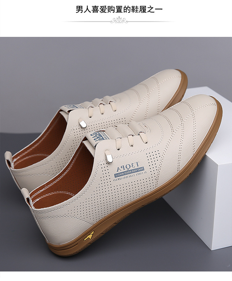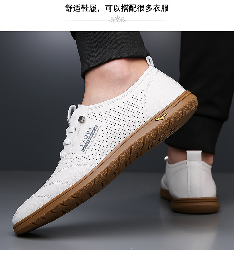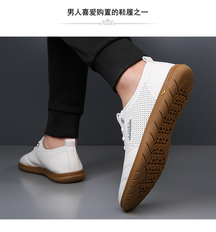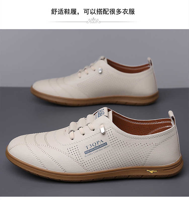 흰색 신발 2025 새로운 여름 패션 다목적 유행 슬립 온 중공 통기성 남성 운전 캐주얼 가죽 신발스토어 가기