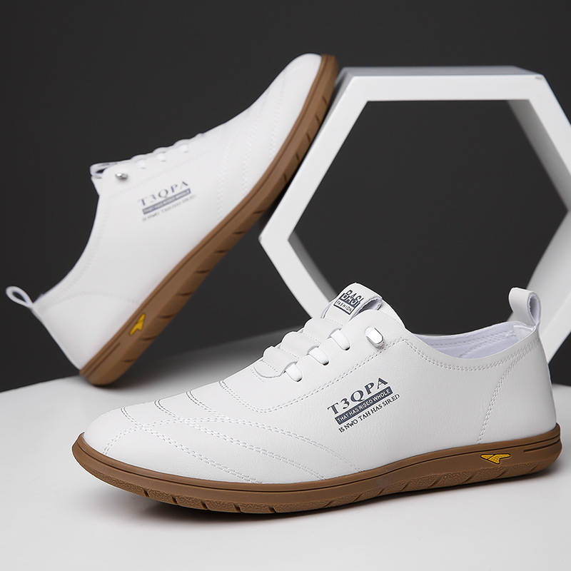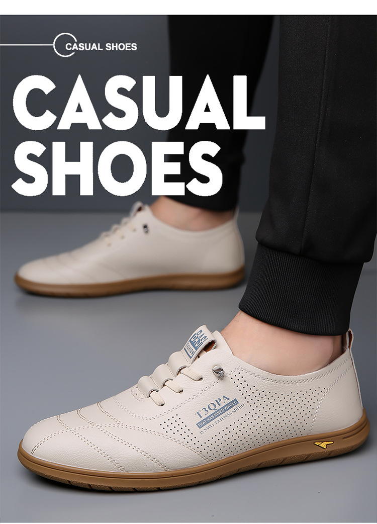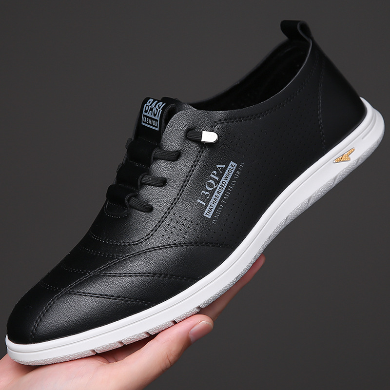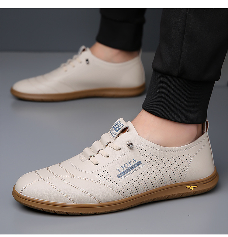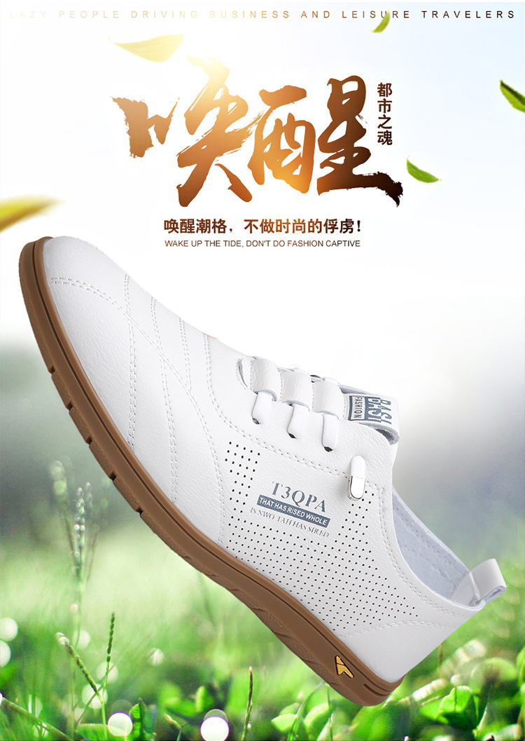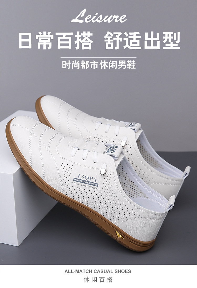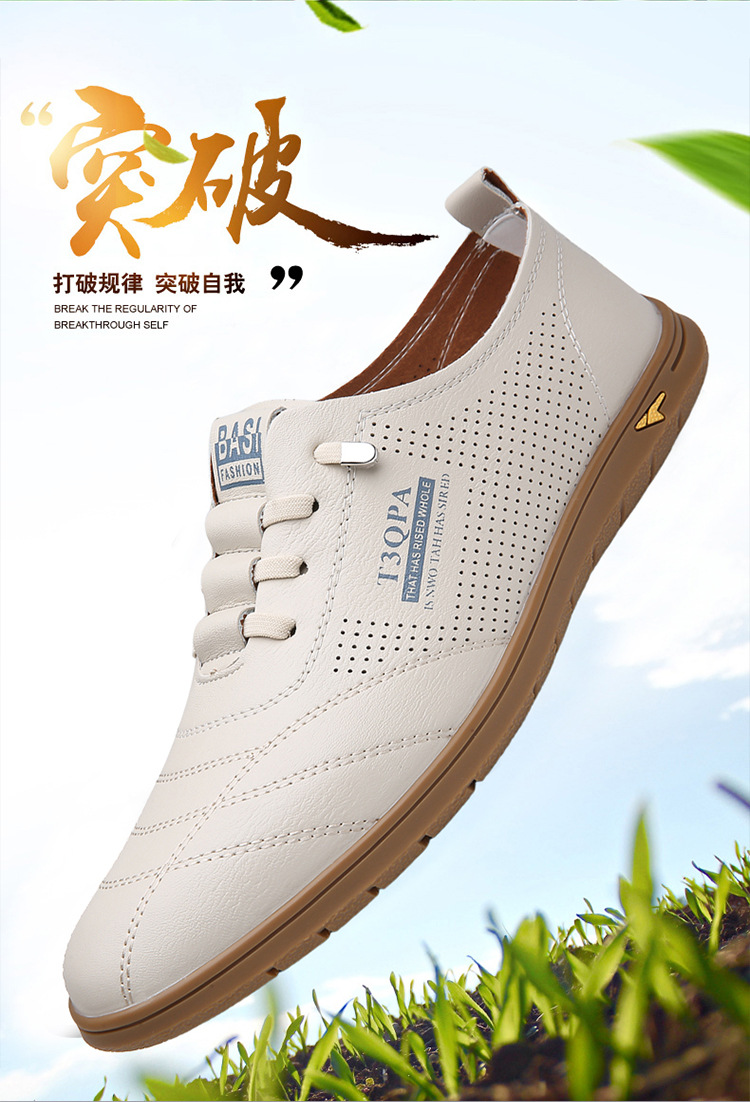 흰색 신발 2025 새로운 여름 패션 다목적 유행 슬립 온 중공 통기성 남성 운전 캐주얼 가죽 신발스토어 가기