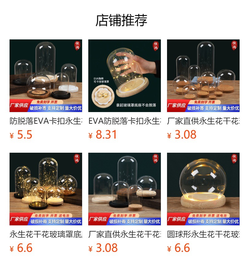 조명이 있는 유리 덮개 받침대, 불멸의 꽃, 드라이플라워 디스플레이 박스, 방진 덮개, 피규어 유리 덮개스토어 가기