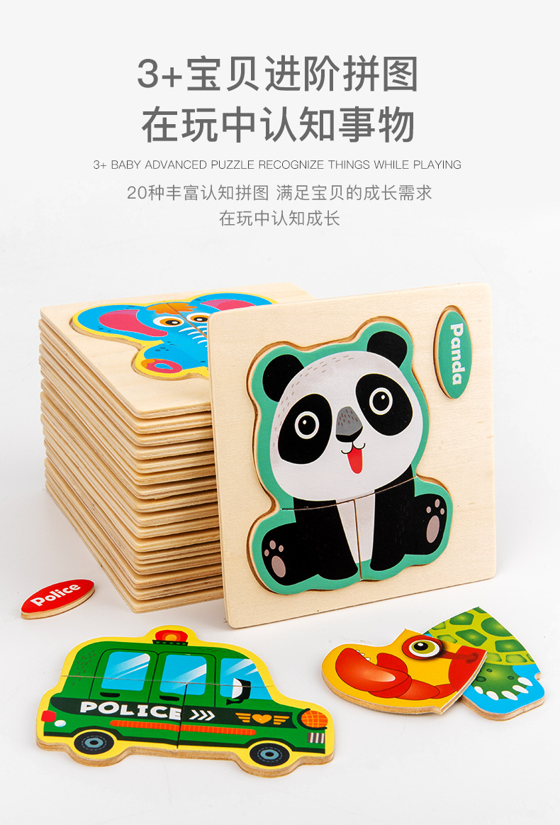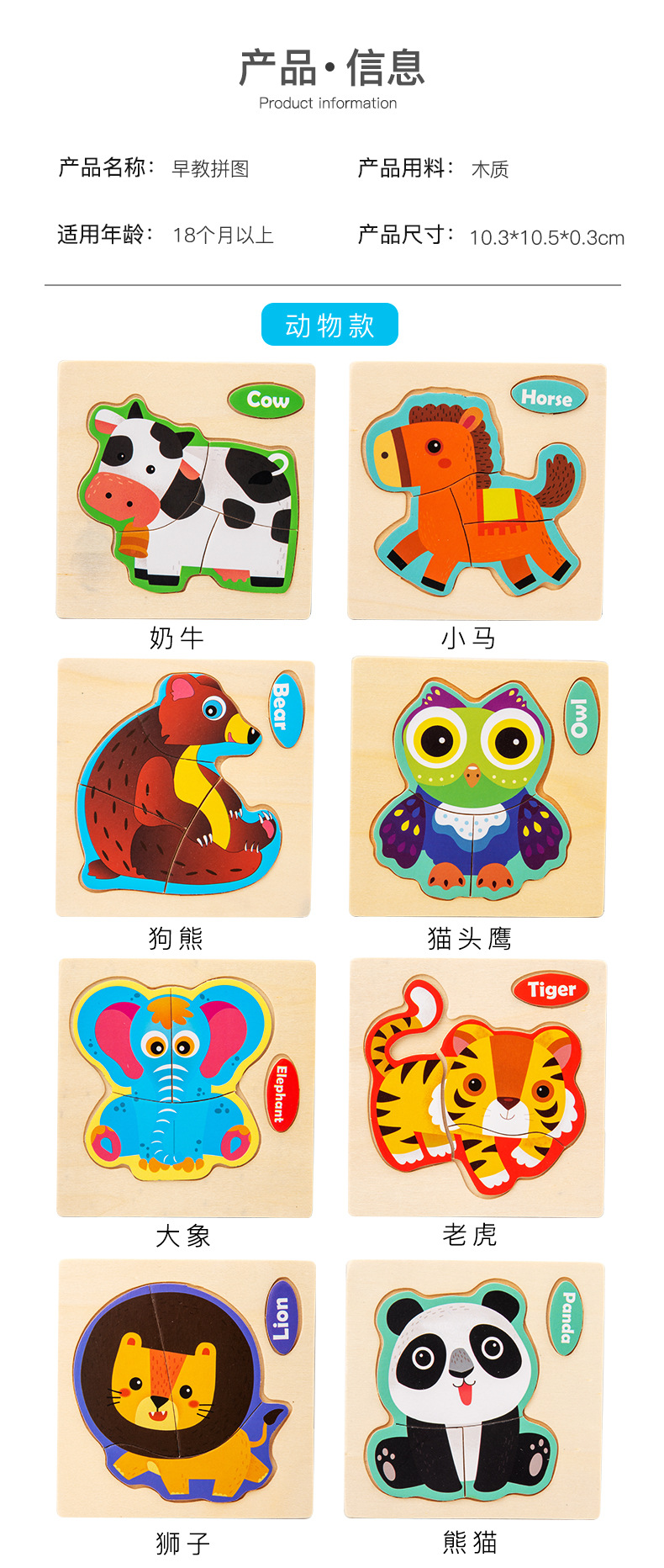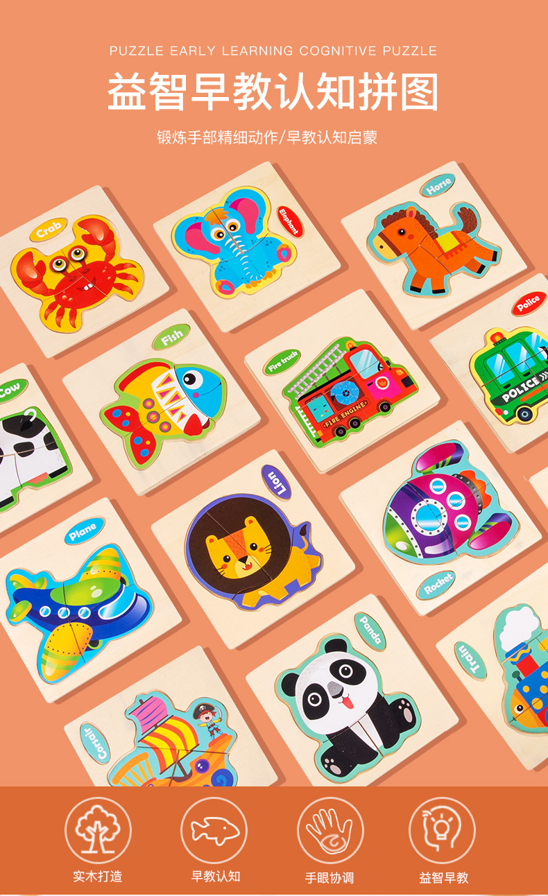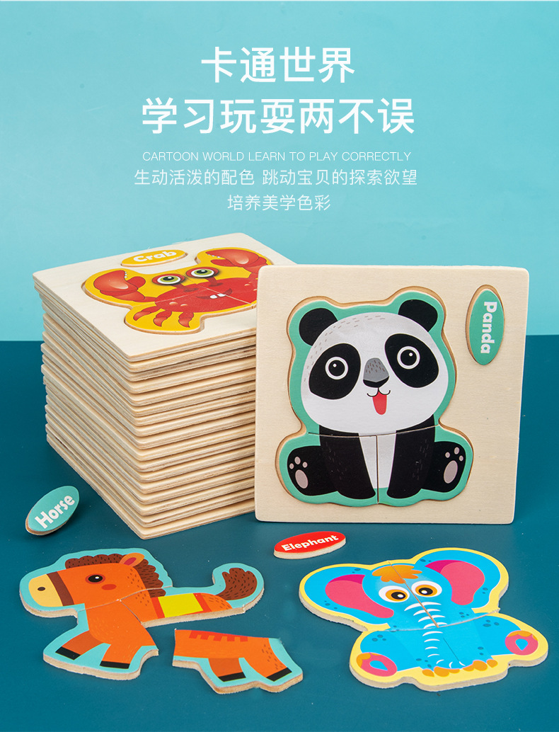 어린이 3 차원 작은 직소 퍼즐 아기 깨달음 조기 교육 동물 인식 나무 직소 바닥 푸시 스톨 작은 장난감 도매