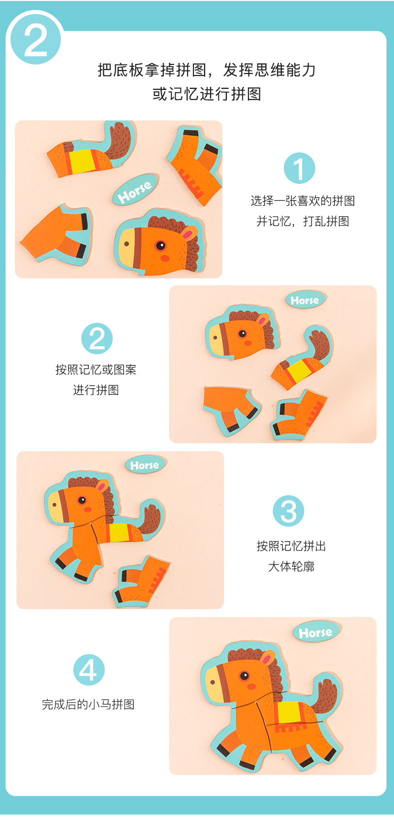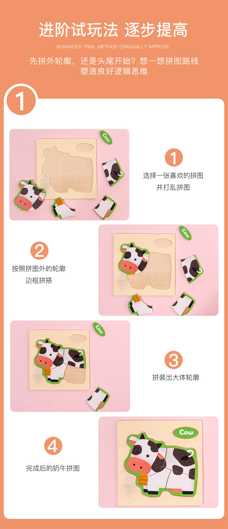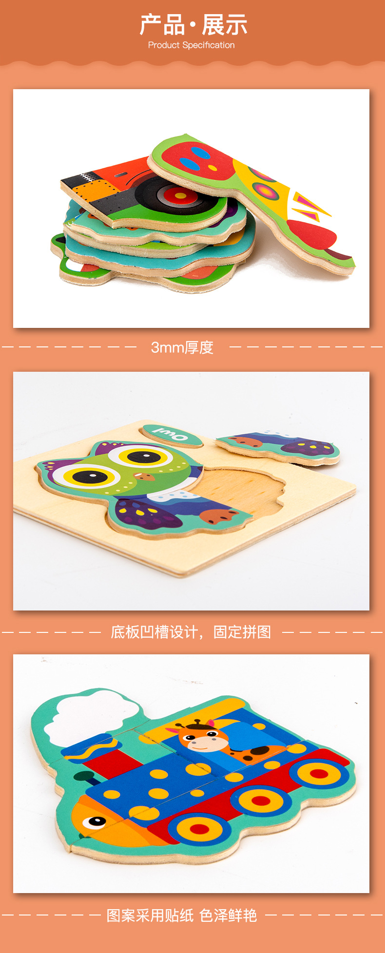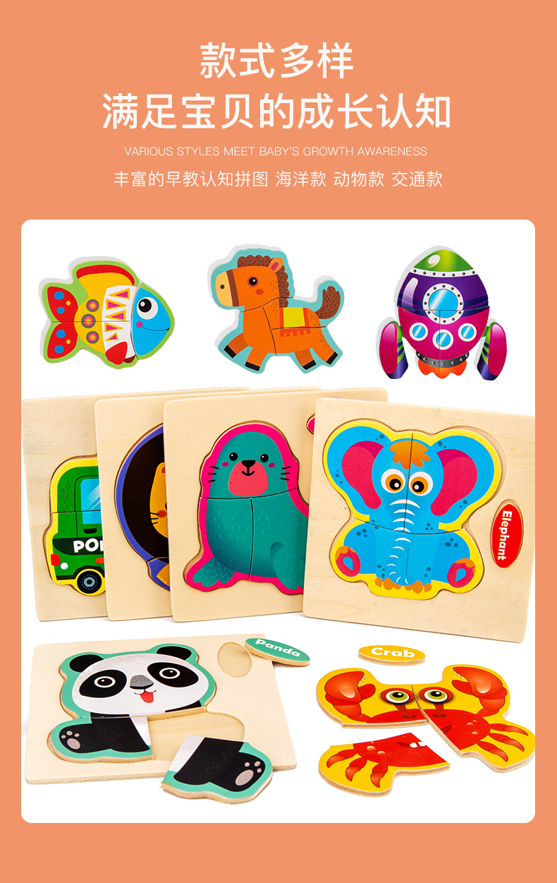 어린이 3 차원 작은 직소 퍼즐 아기 깨달음 조기 교육 동물 인식 나무 직소 바닥 푸시 스톨 작은 장난감 도매