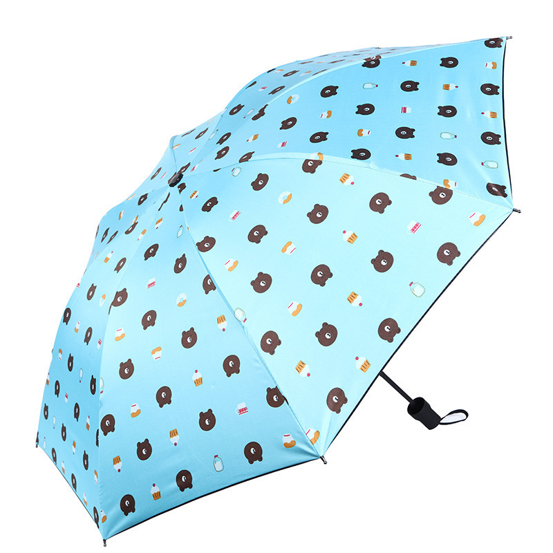 수동 귀여운 곰 접이식 비 또는 빛 우산 비닐 차양 및 자외선 차단