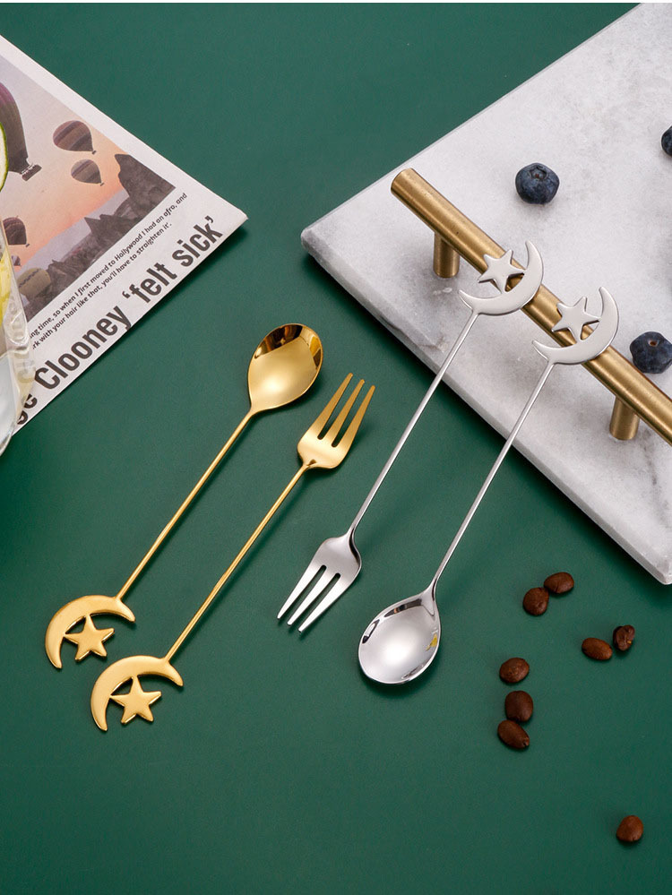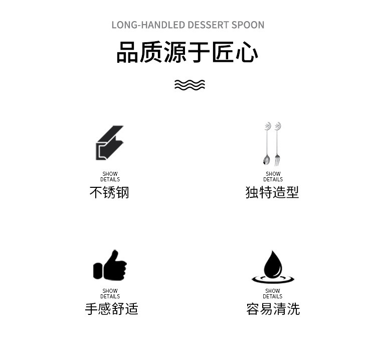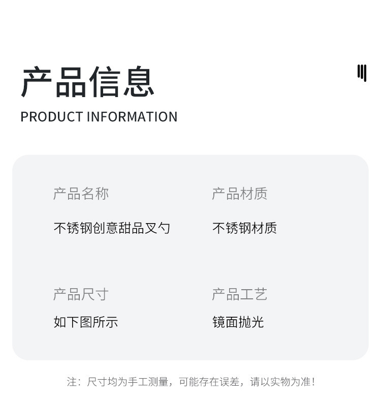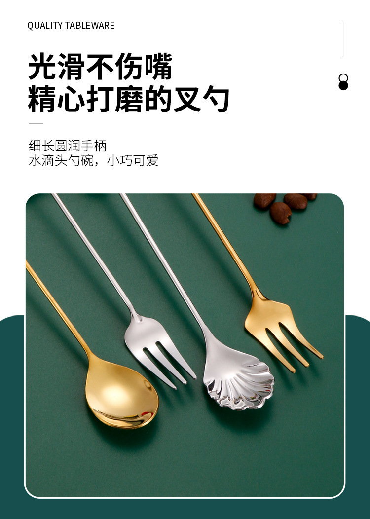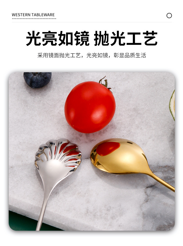 【工艺】餐具采用优质不锈钢板材锻造而成,打磨抛光,压制成型。餐具精心设计,经久耐用。