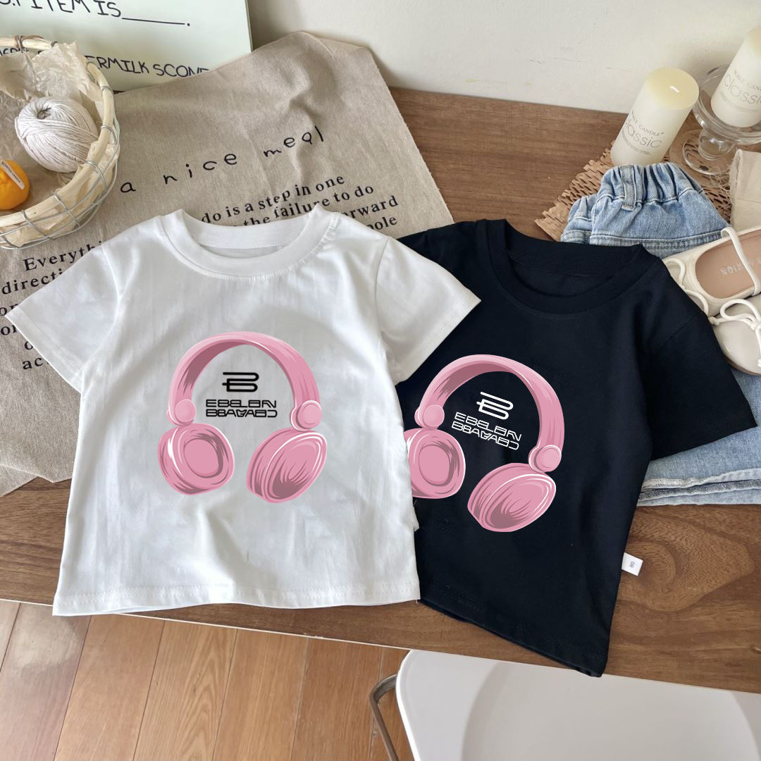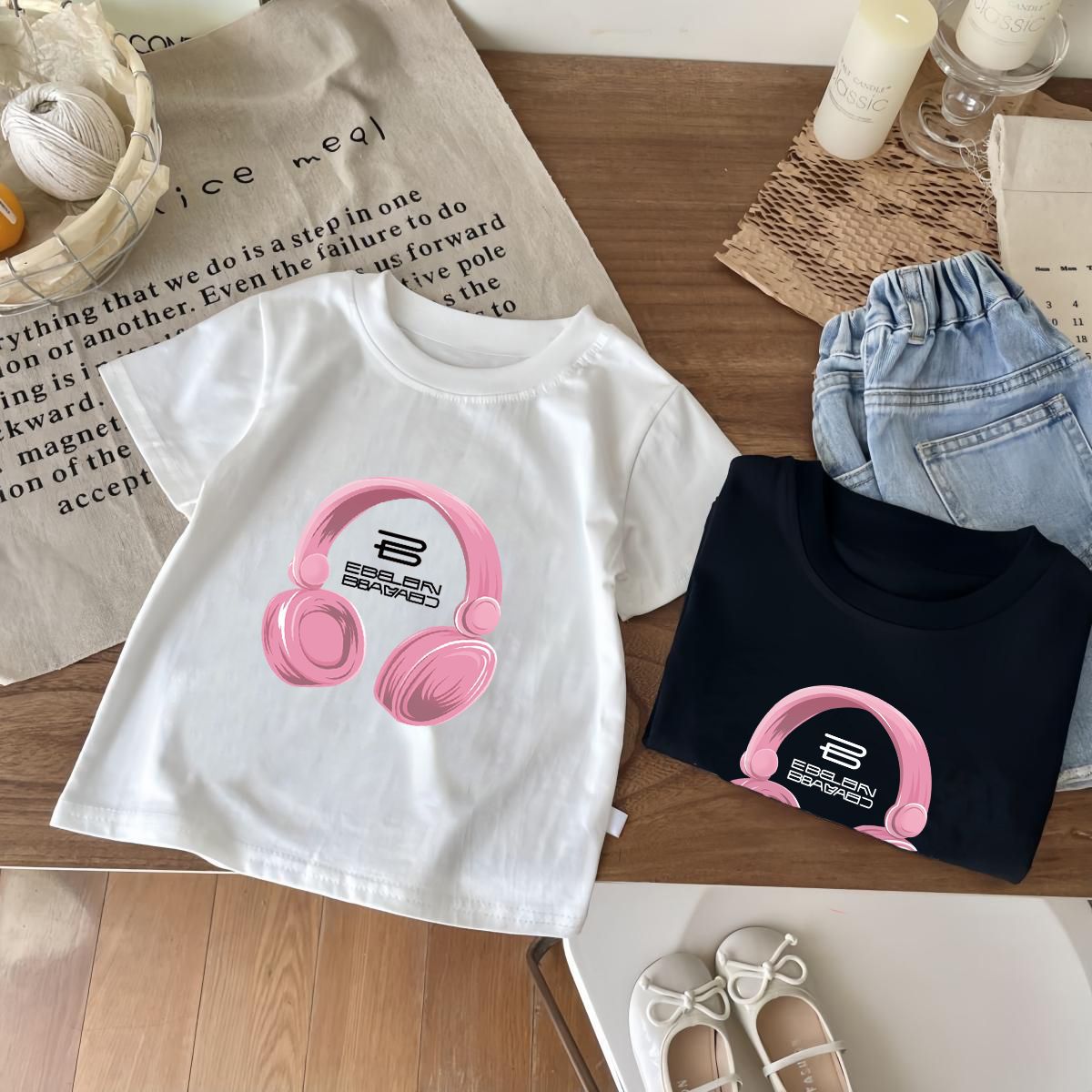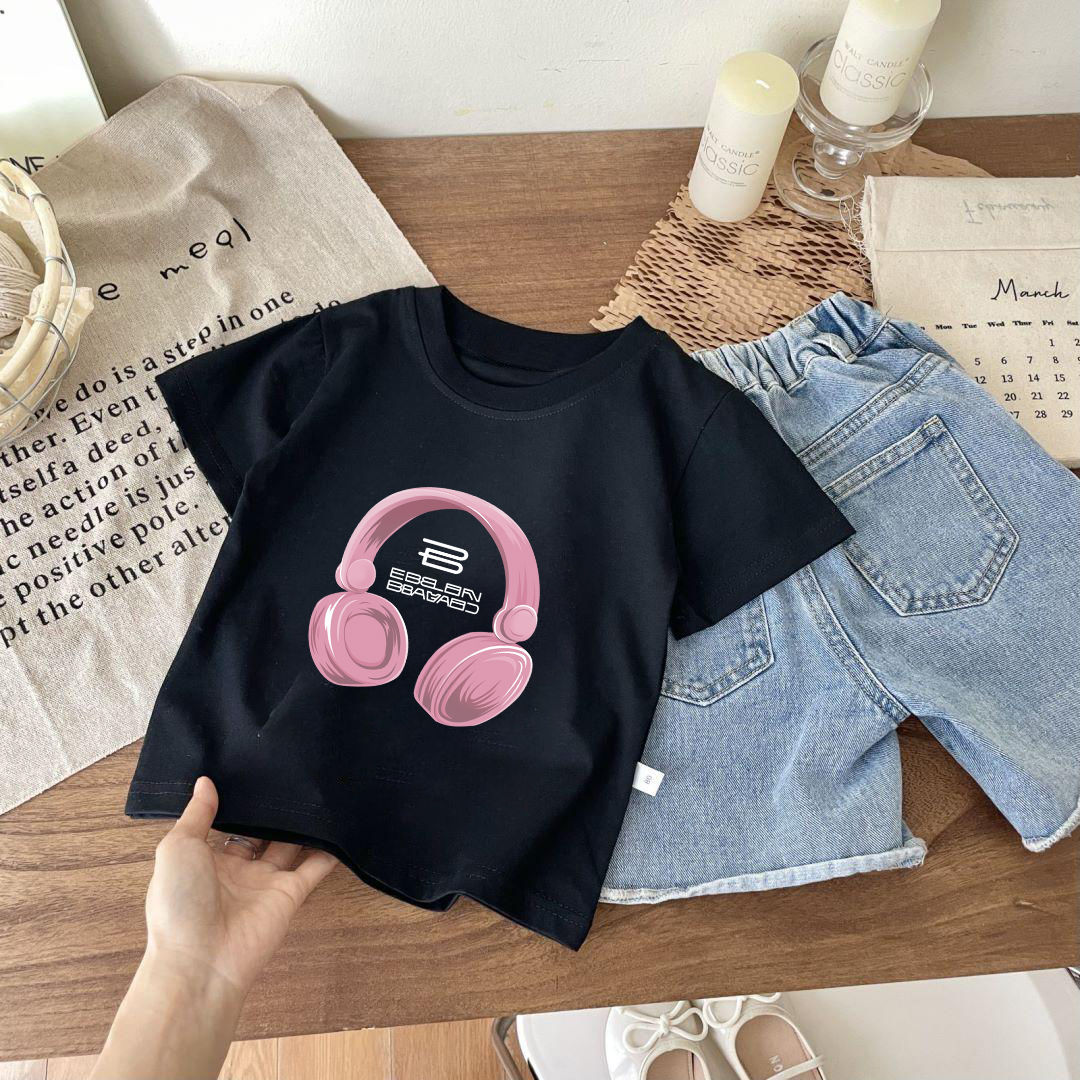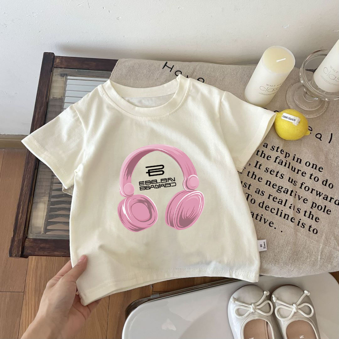 100 면 아동복 2024 여름 새 소년 반팔 티셔츠 소녀 아기 인쇄 만화 캐주얼 탑스토어 가기