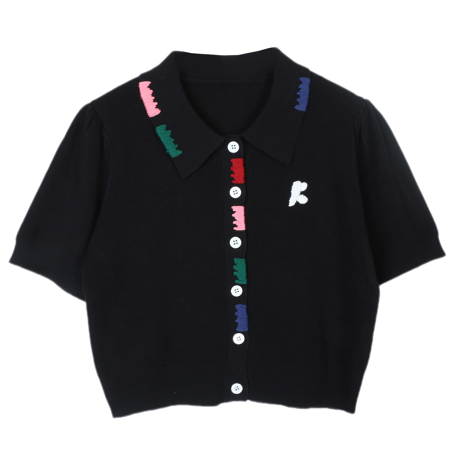 2024 봄과 여름 새로운 달콤한 니트 카디건 여성의 다채로운 중공업 핸드 훅 폴로 목 짧은 니트 카디건 탑스토어 가기