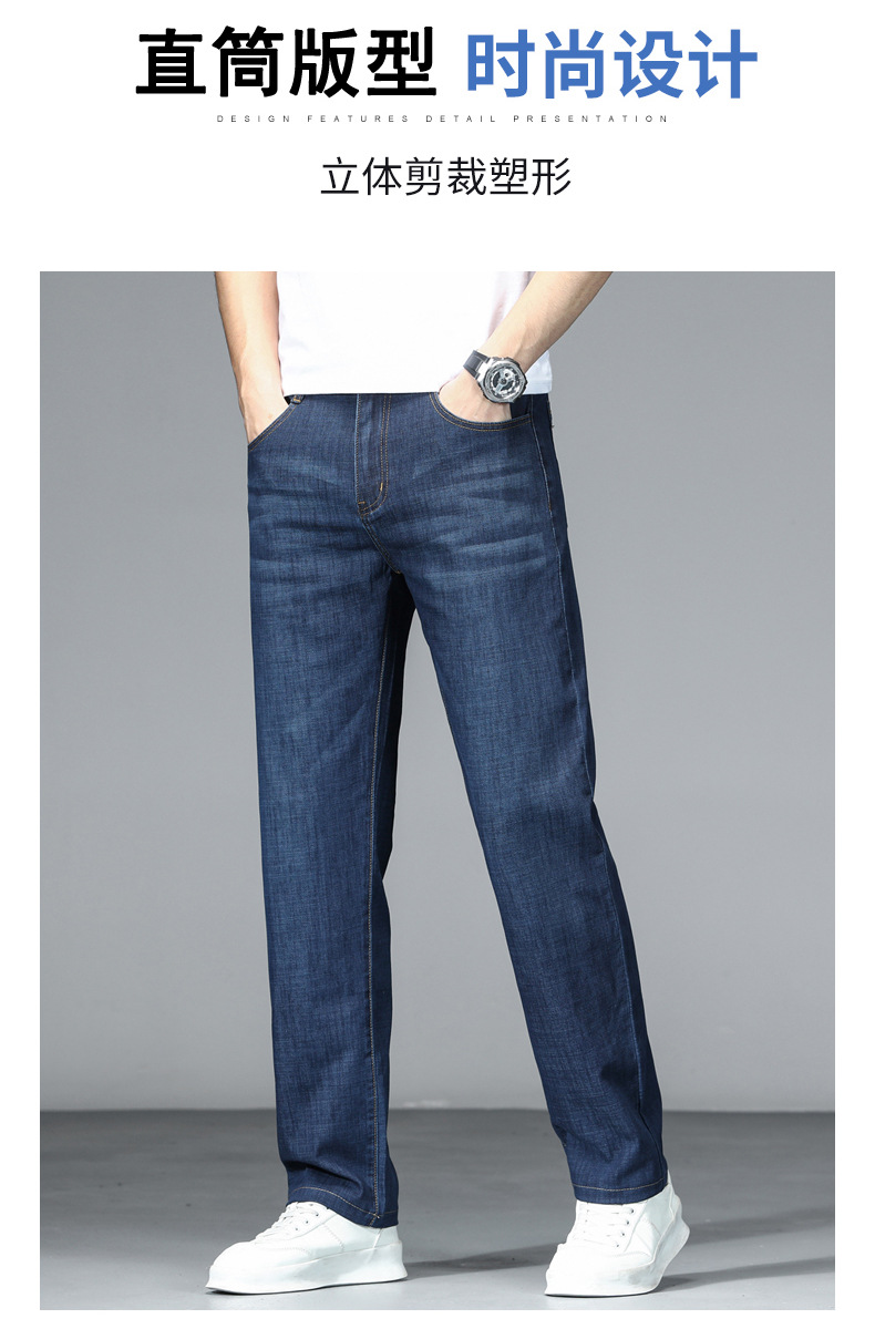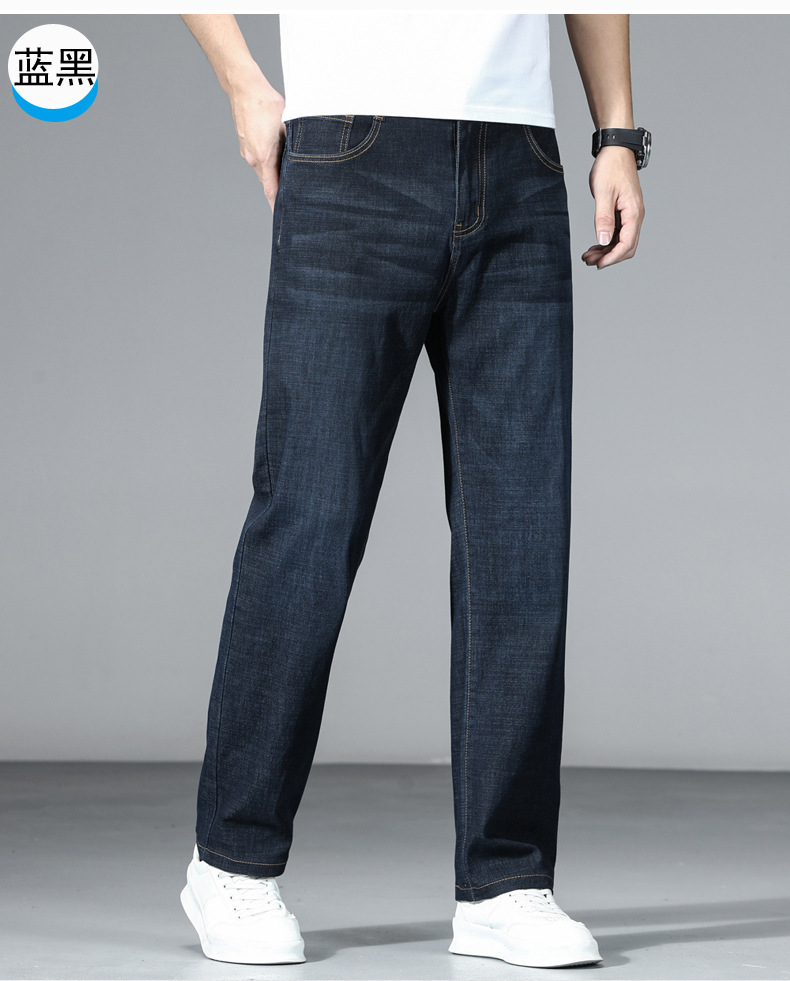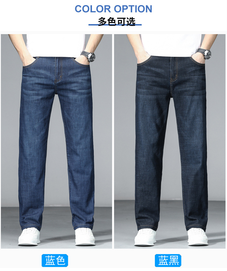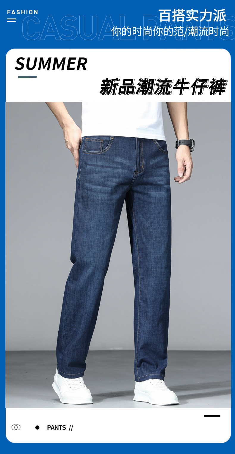 여름 얇은 캐주얼 청바지 남성 탄성 스트레이트 청소년 비즈니스 패션 조커 데님 바지 머리카락 세대