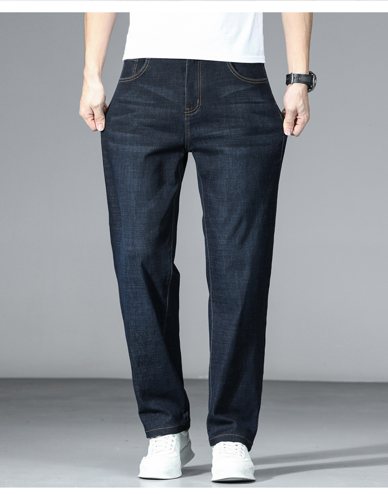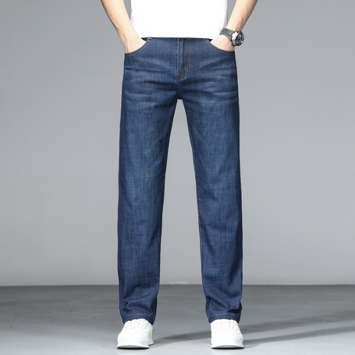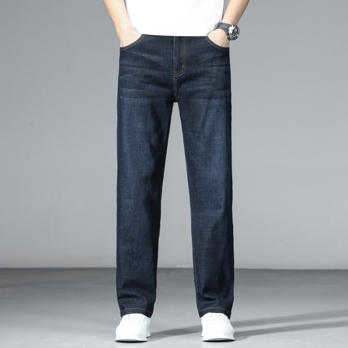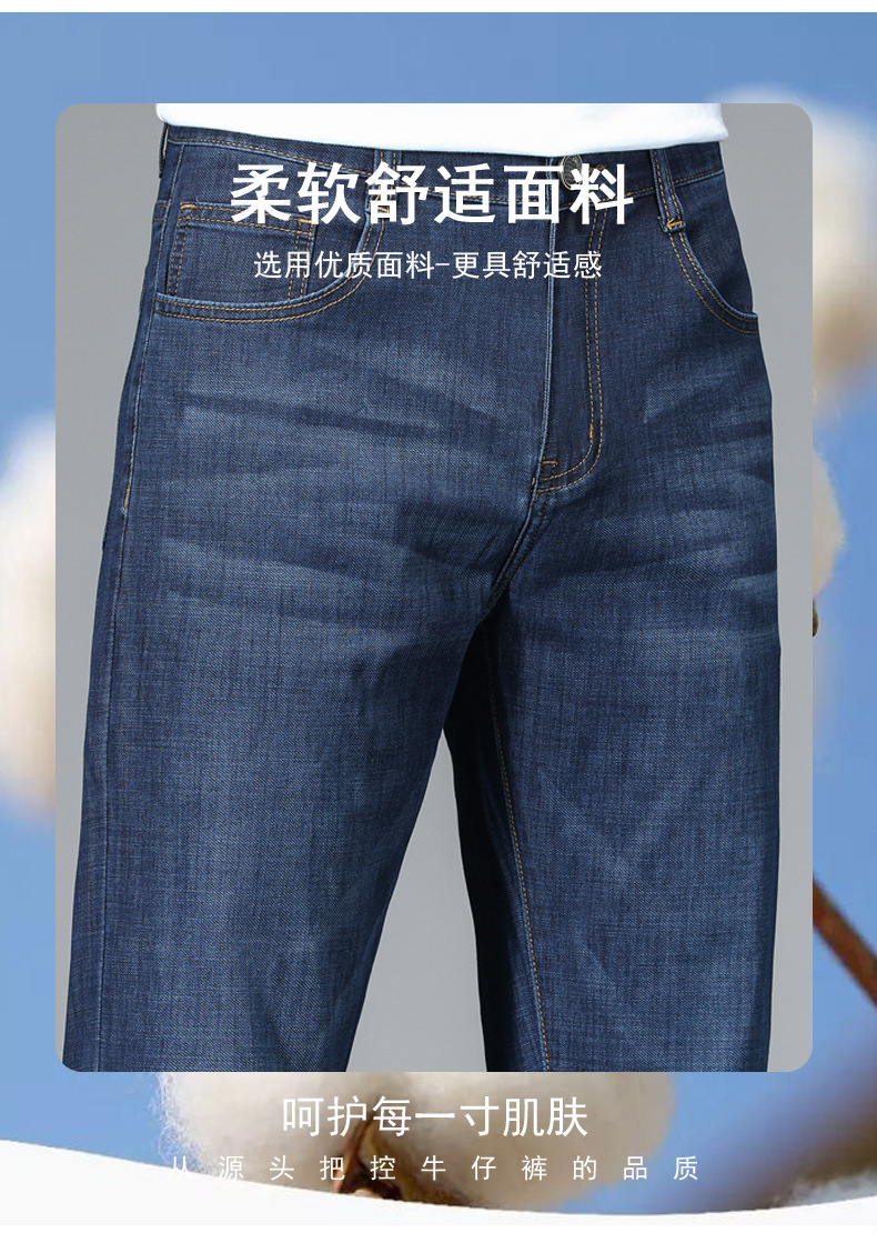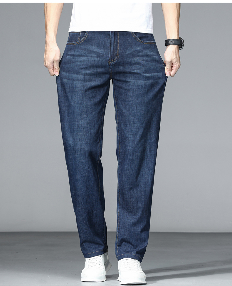 여름 얇은 캐주얼 청바지 남성 탄성 스트레이트 청소년 비즈니스 패션 조커 데님 바지 머리카락 세대
