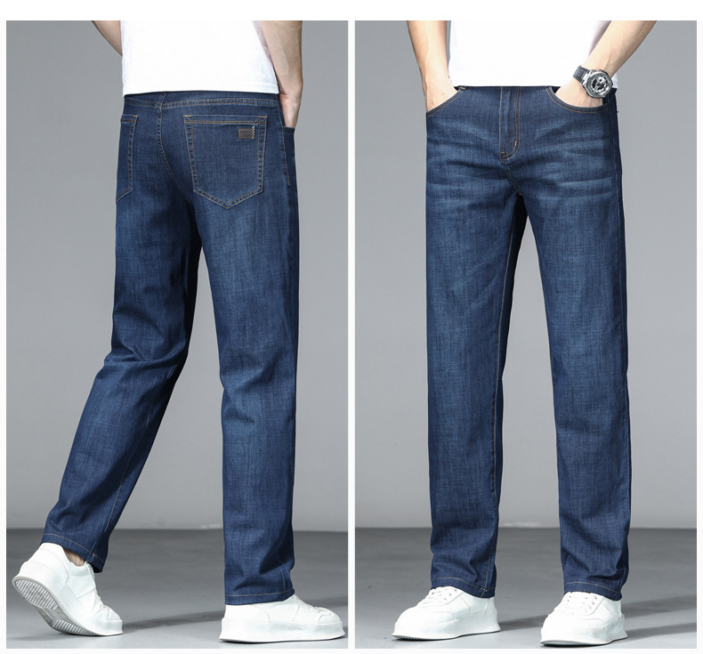 여름 얇은 캐주얼 청바지 남성 탄성 스트레이트 청소년 비즈니스 패션 조커 데님 바지 머리카락 세대스토어 가기