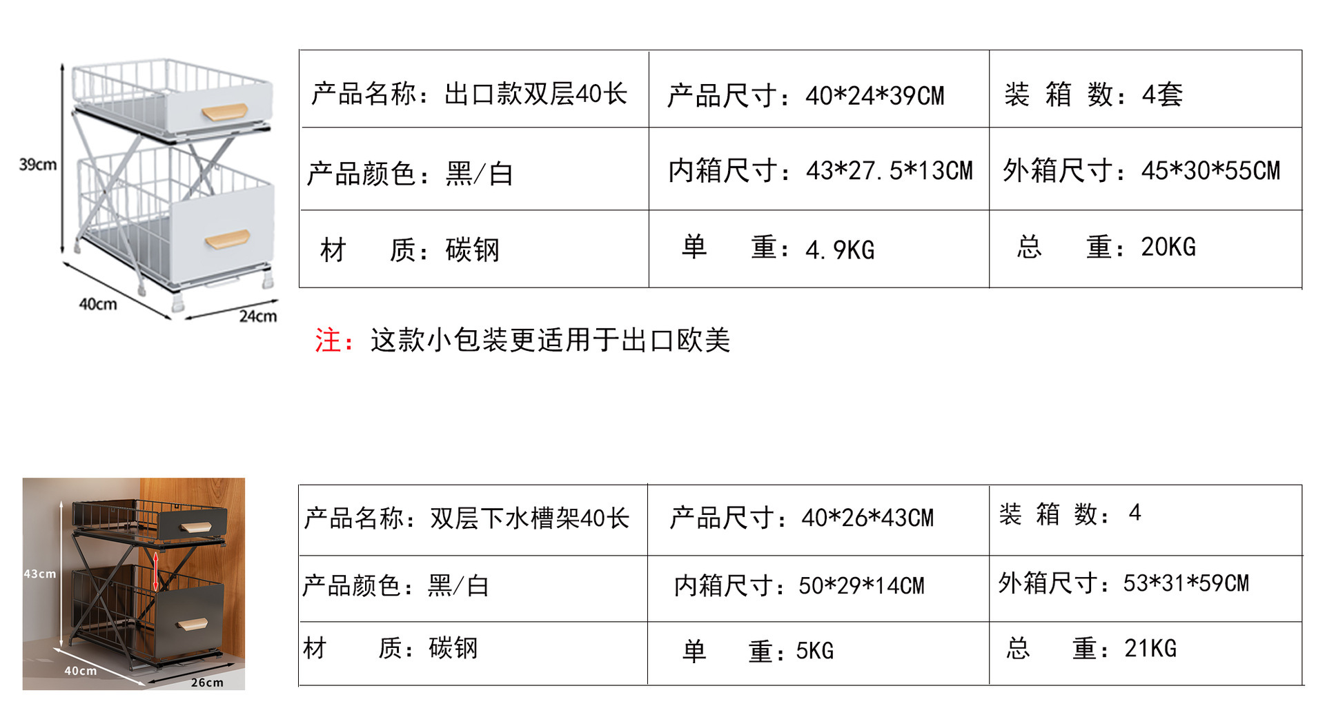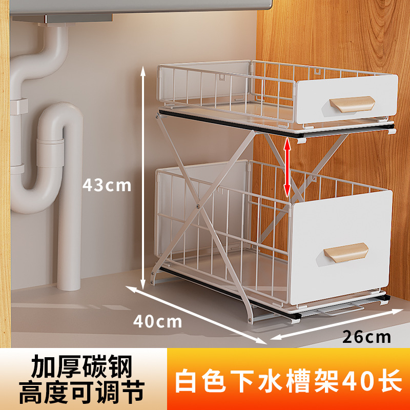 • 4 중 낮은 싱크 랙 더블 레이어 40 롱 화이트