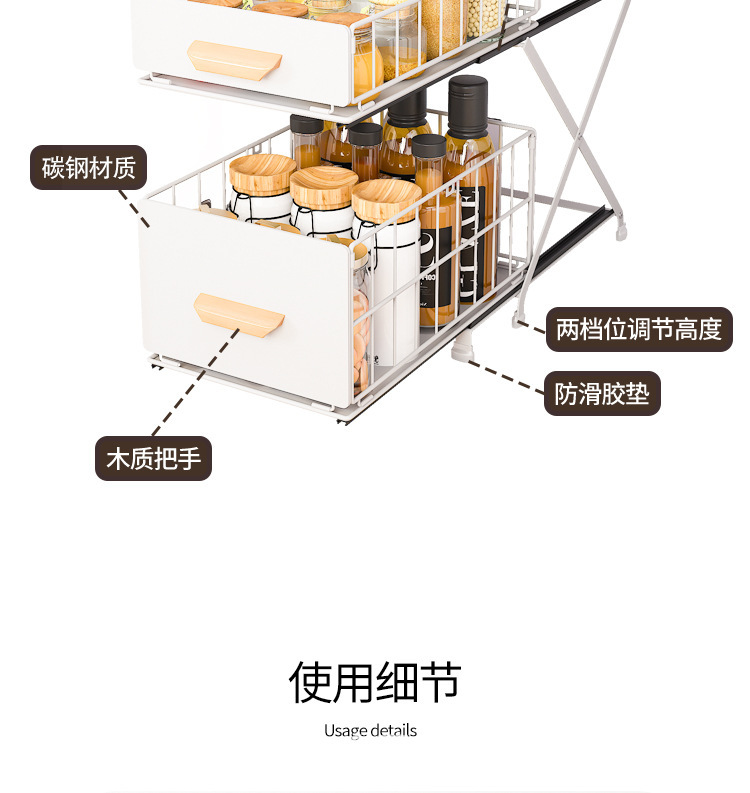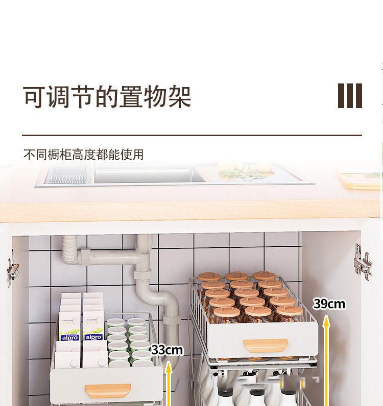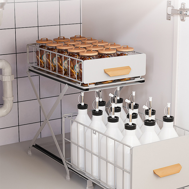 주방 조미료 병 보관 랙 풀 아웃 카운터 탑 저장 랙 캐비닛 리프팅 레이즈 조미료 탱크 저장 랙 더블 레이어