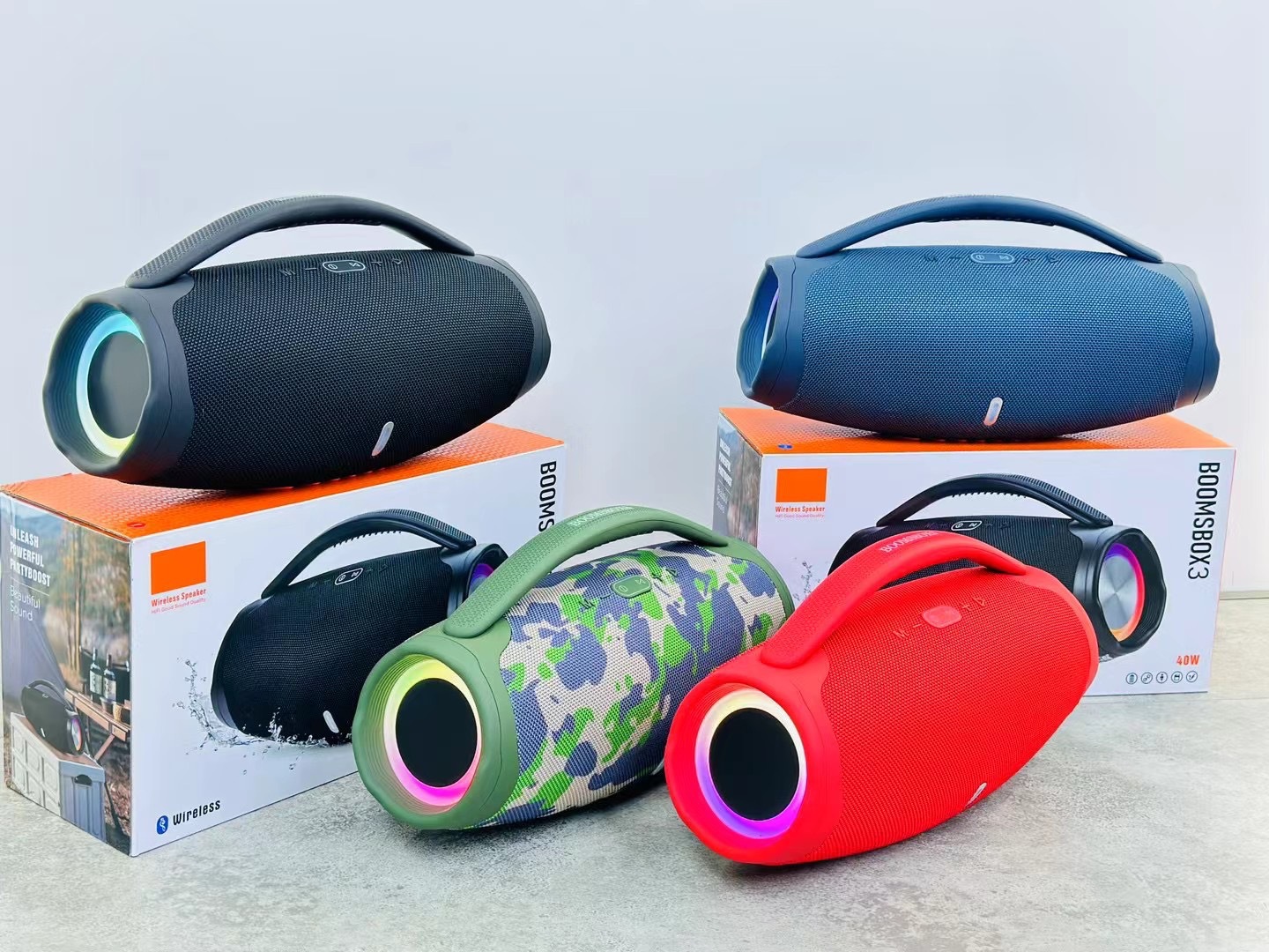 대외 무역 블루투스 스피커 40W Ares 3LED 큰 볼륨 BOOMSBOX3 무거운 서브 우퍼 야외 휴대용