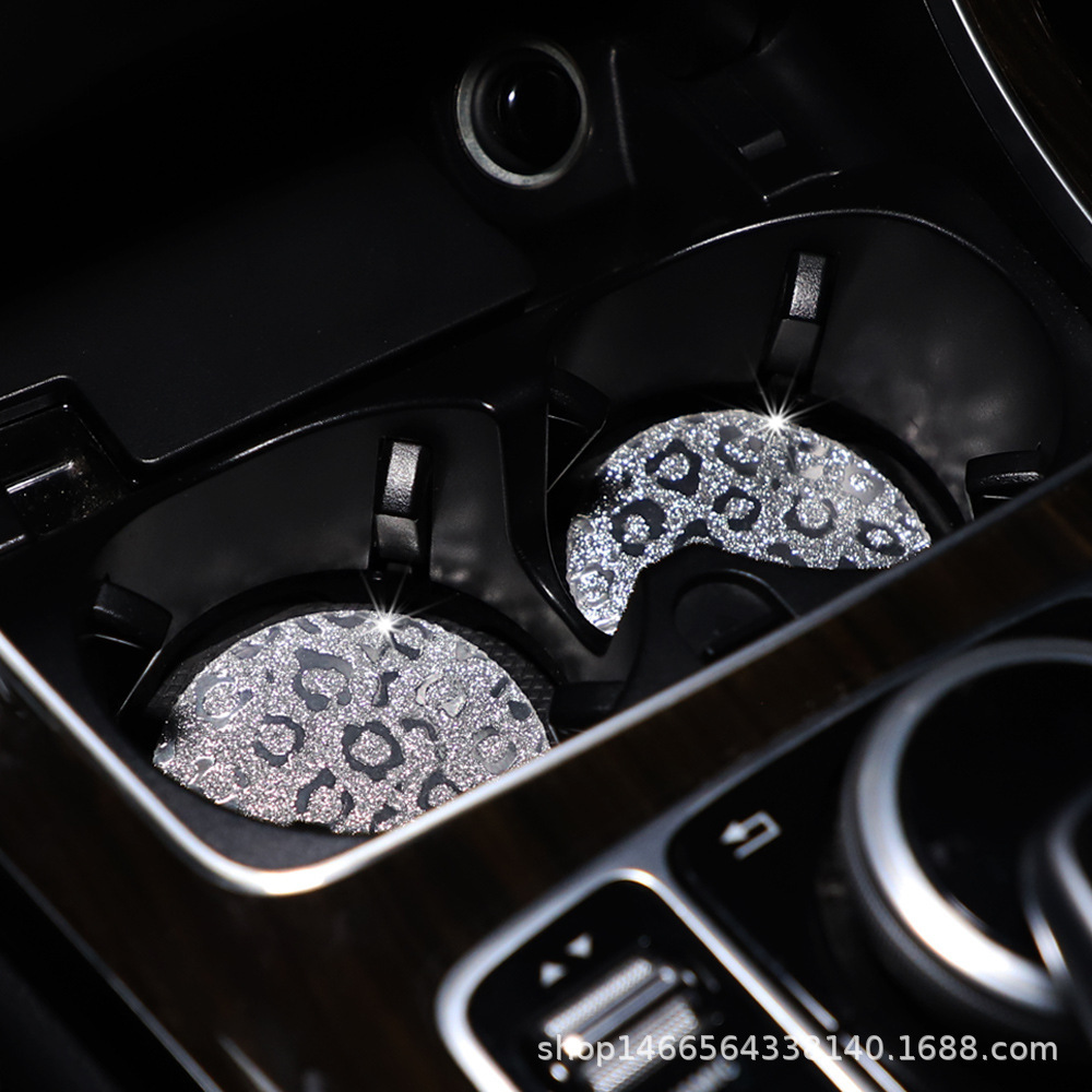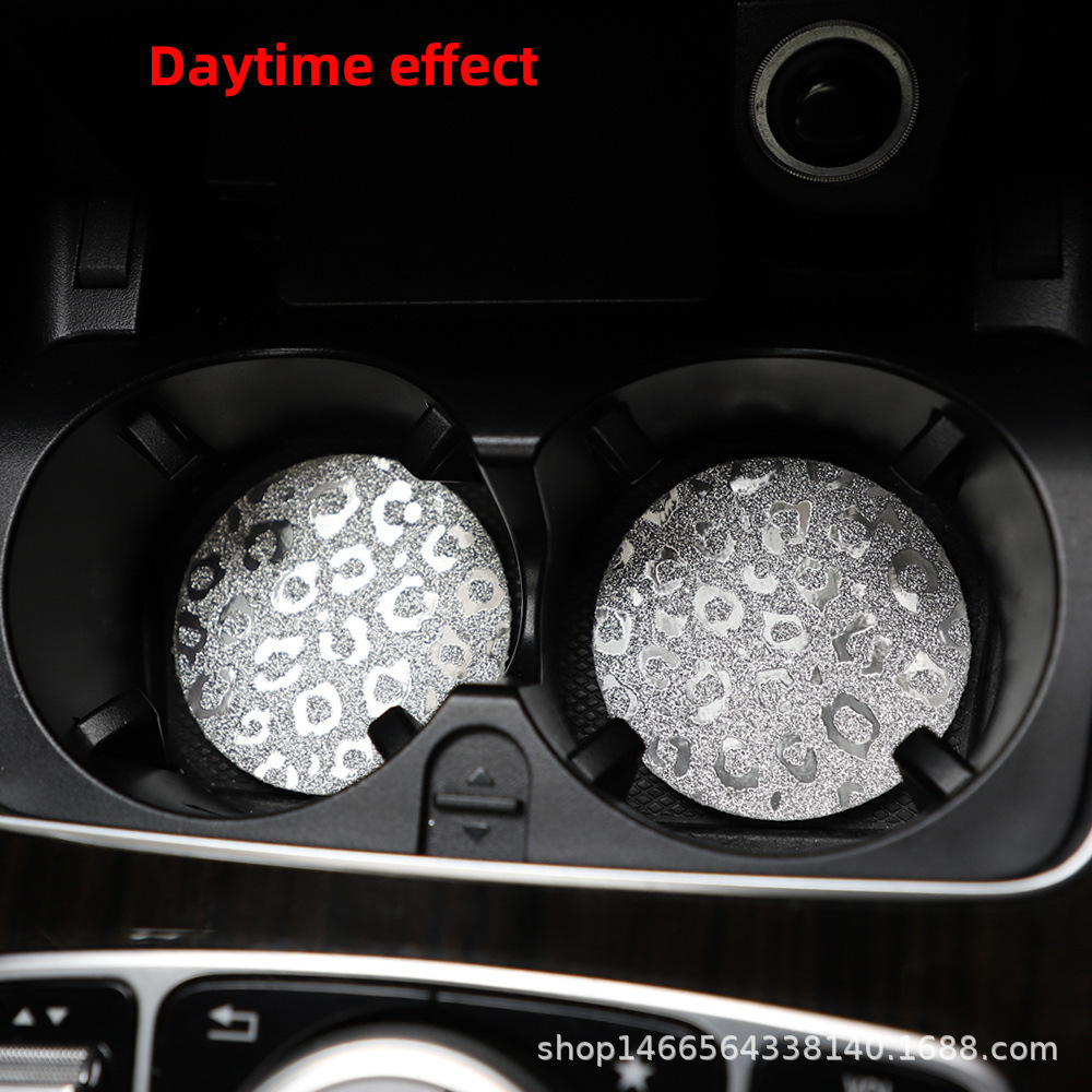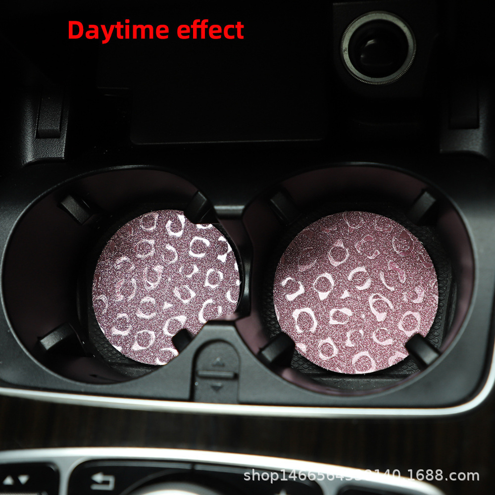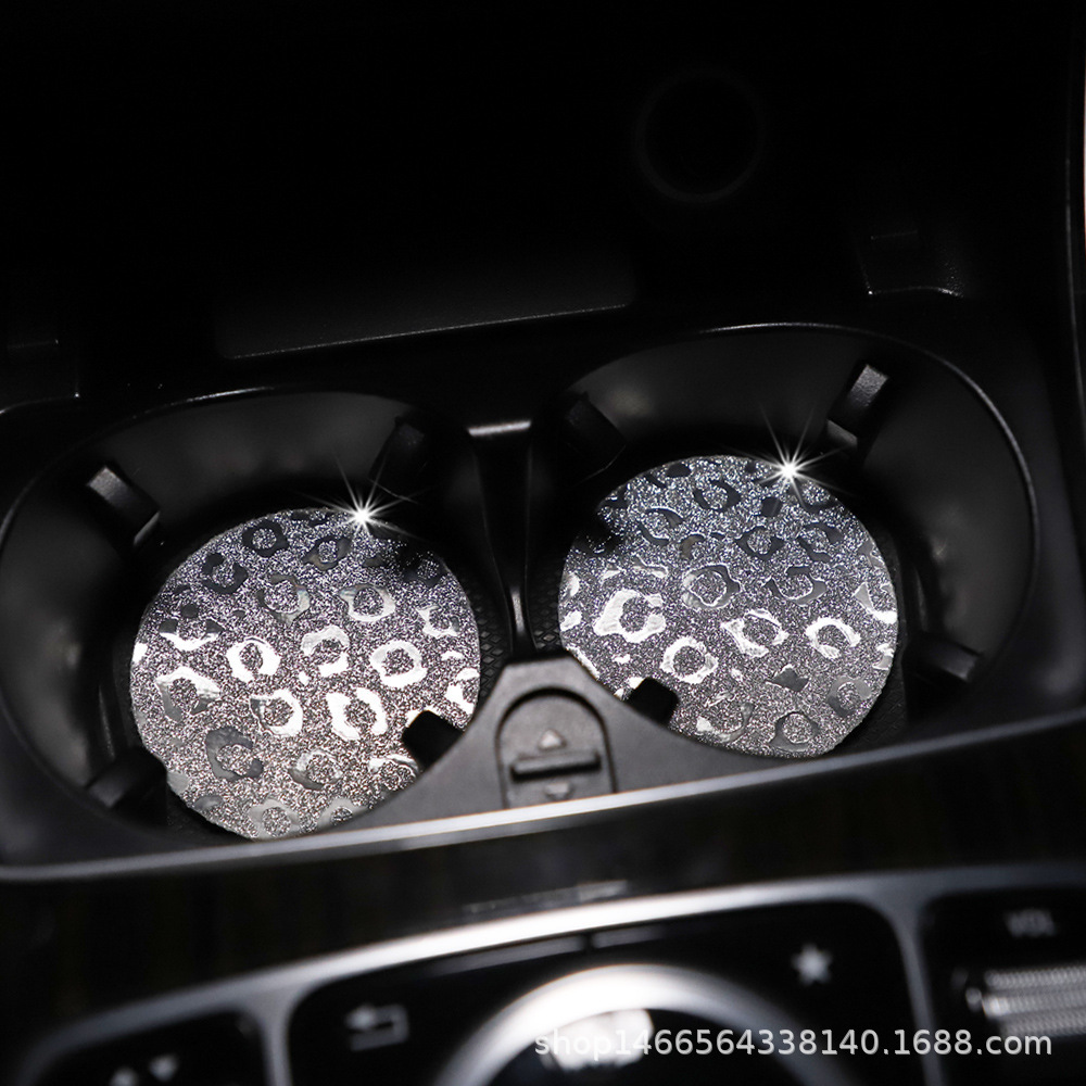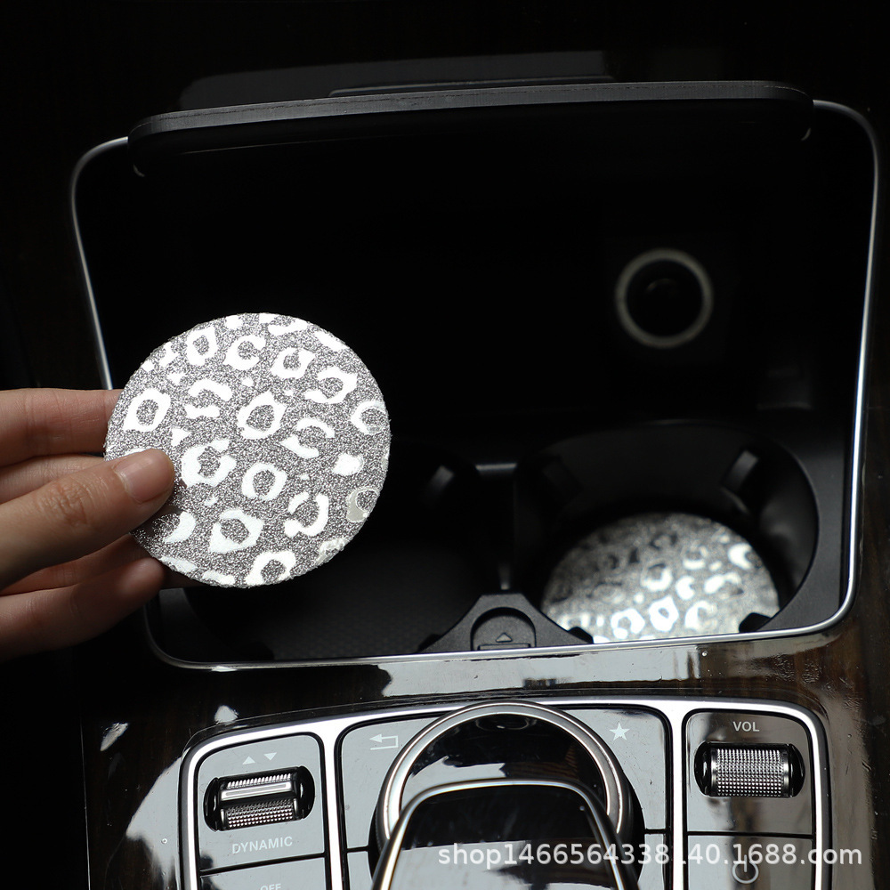 플래시 골드 레오파드 무늬 라운드 카 티 컵 매트 자동차 안티 슬립 매트 사계절 일반 자동차 인테리어 액세서리 크로스 보더 페어