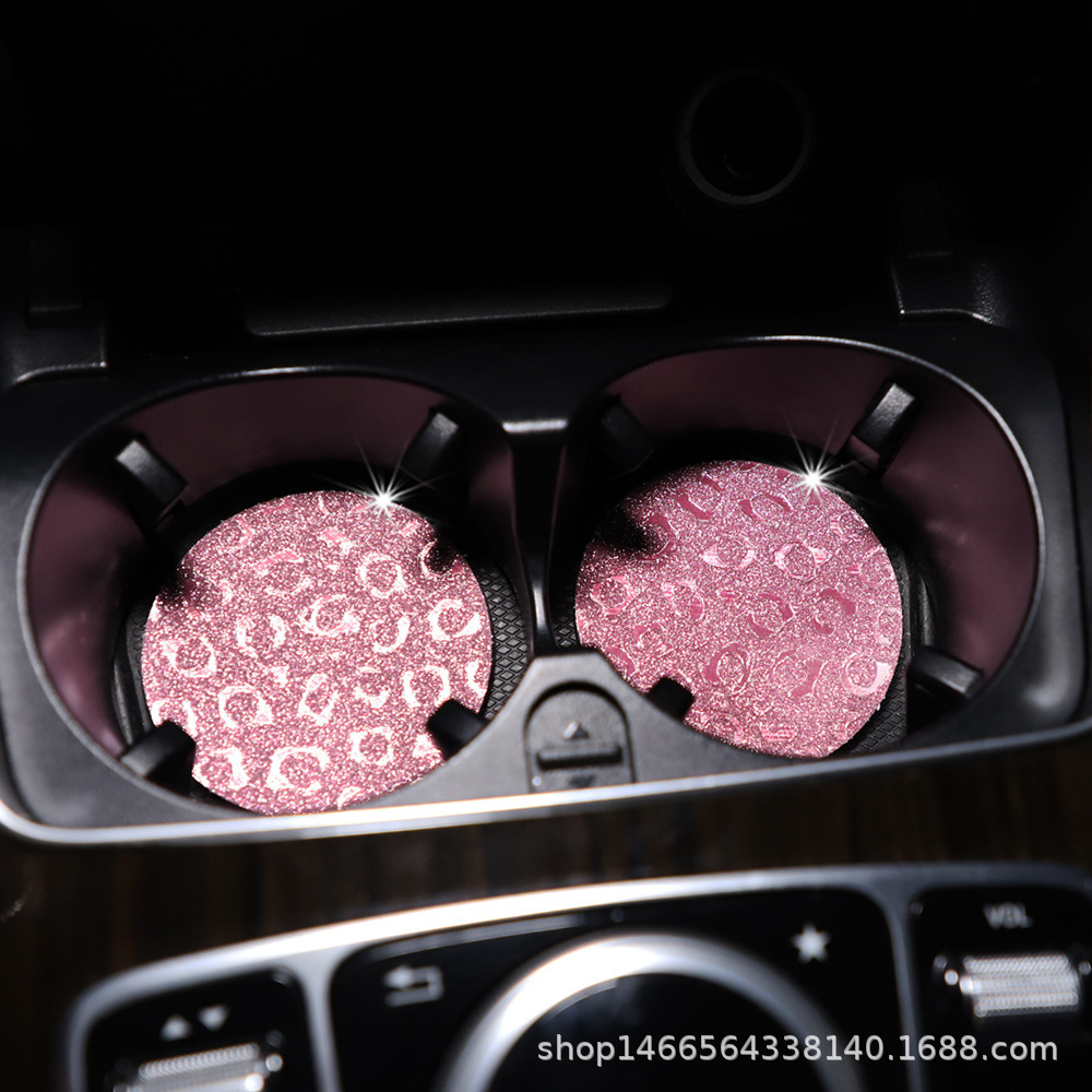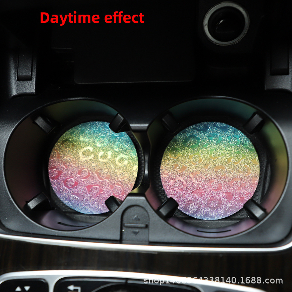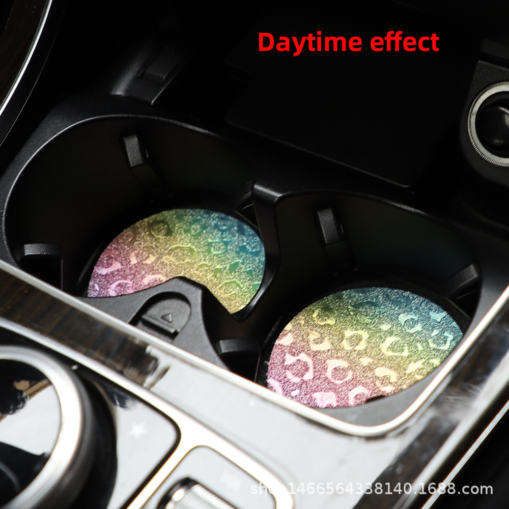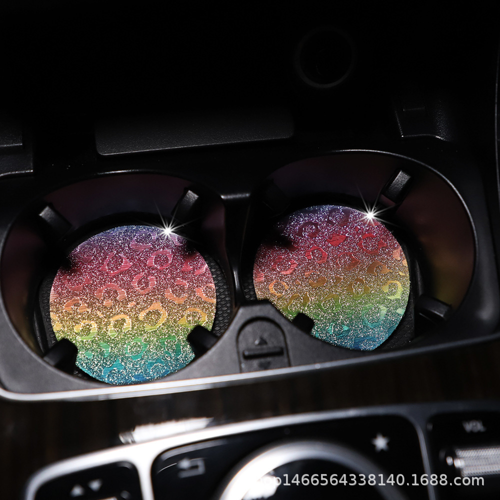 플래시 골드 레오파드 무늬 라운드 카 티 컵 매트 자동차 안티 슬립 매트 사계절 일반 자동차 인테리어 액세서리 크로스 보더 페어