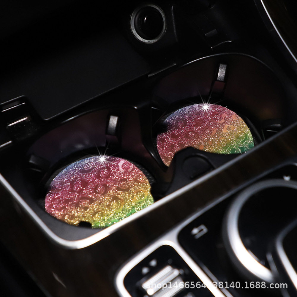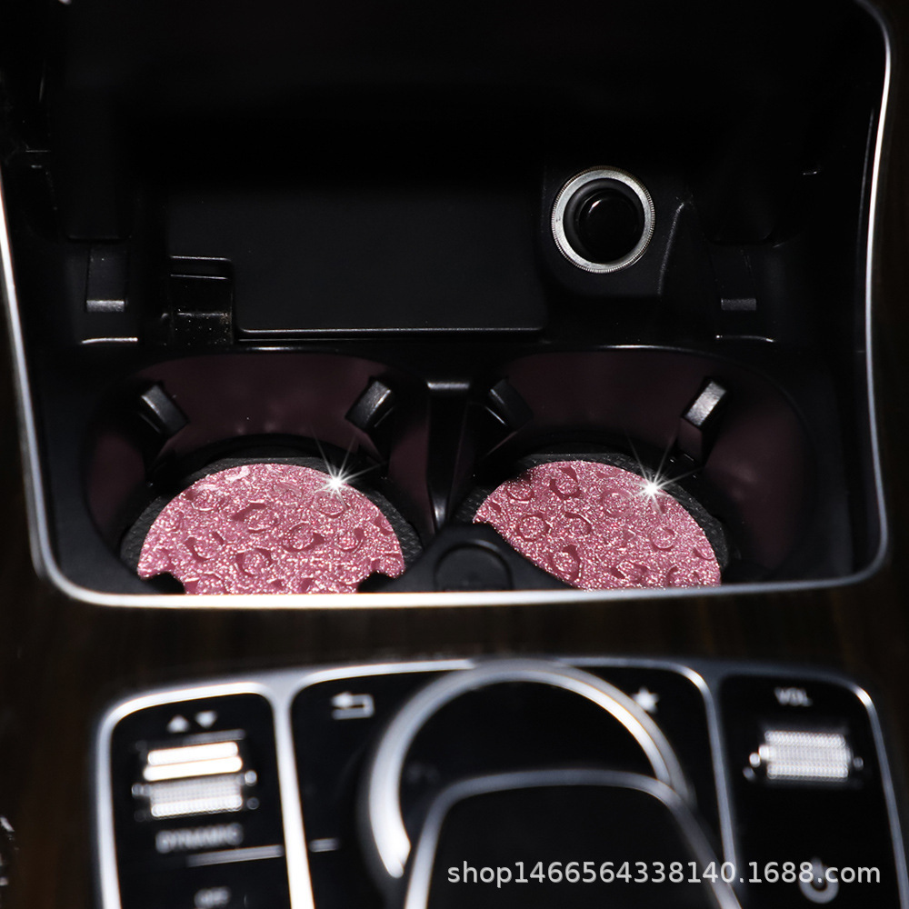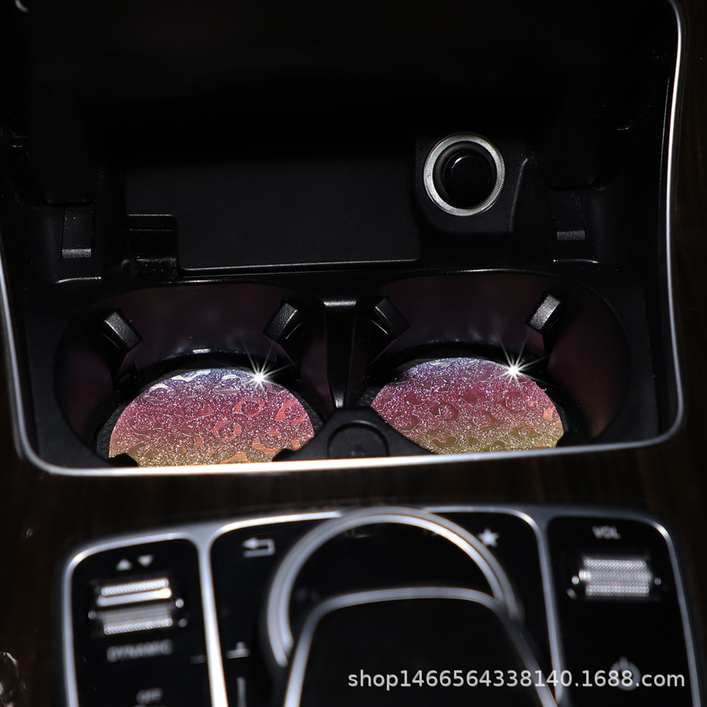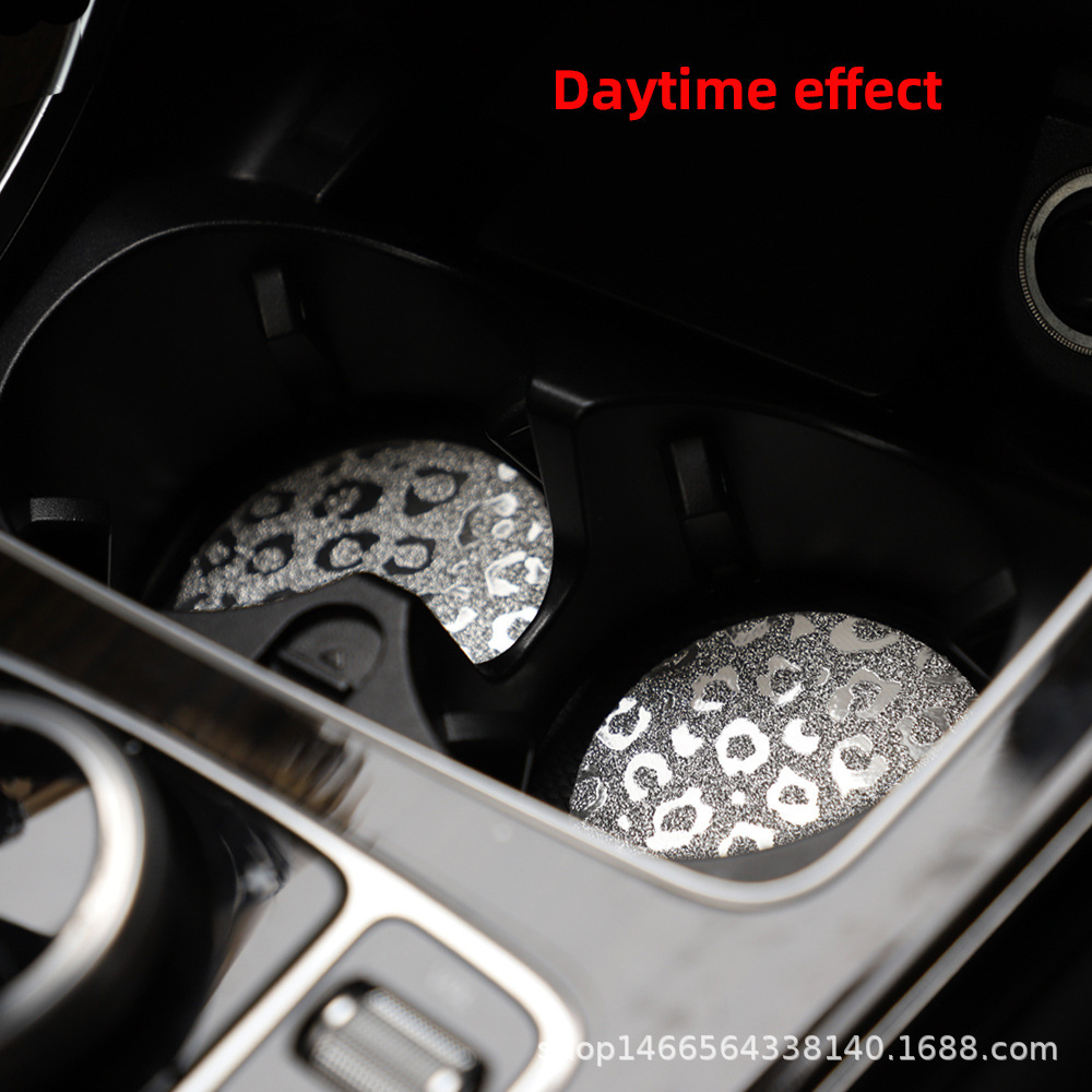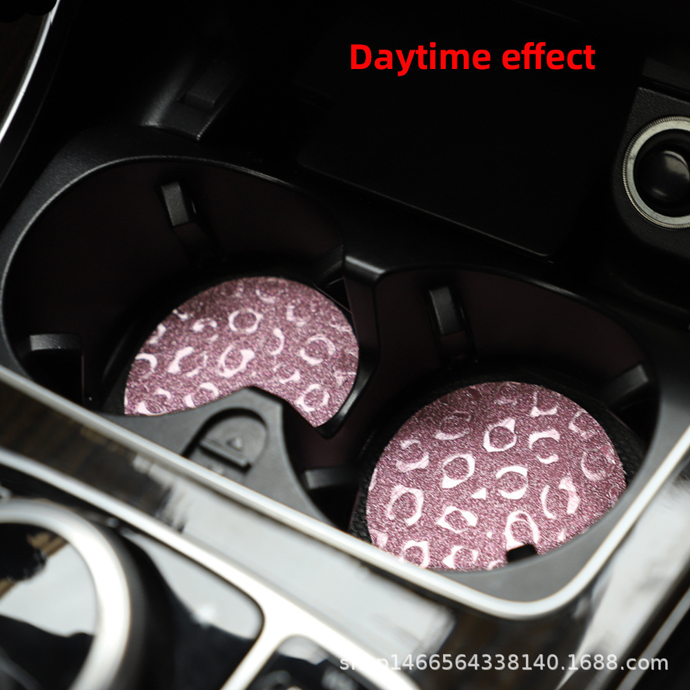 플래시 골드 레오파드 무늬 라운드 카 티 컵 매트 자동차 안티 슬립 매트 사계절 일반 자동차 인테리어 액세서리 크로스 보더 페어