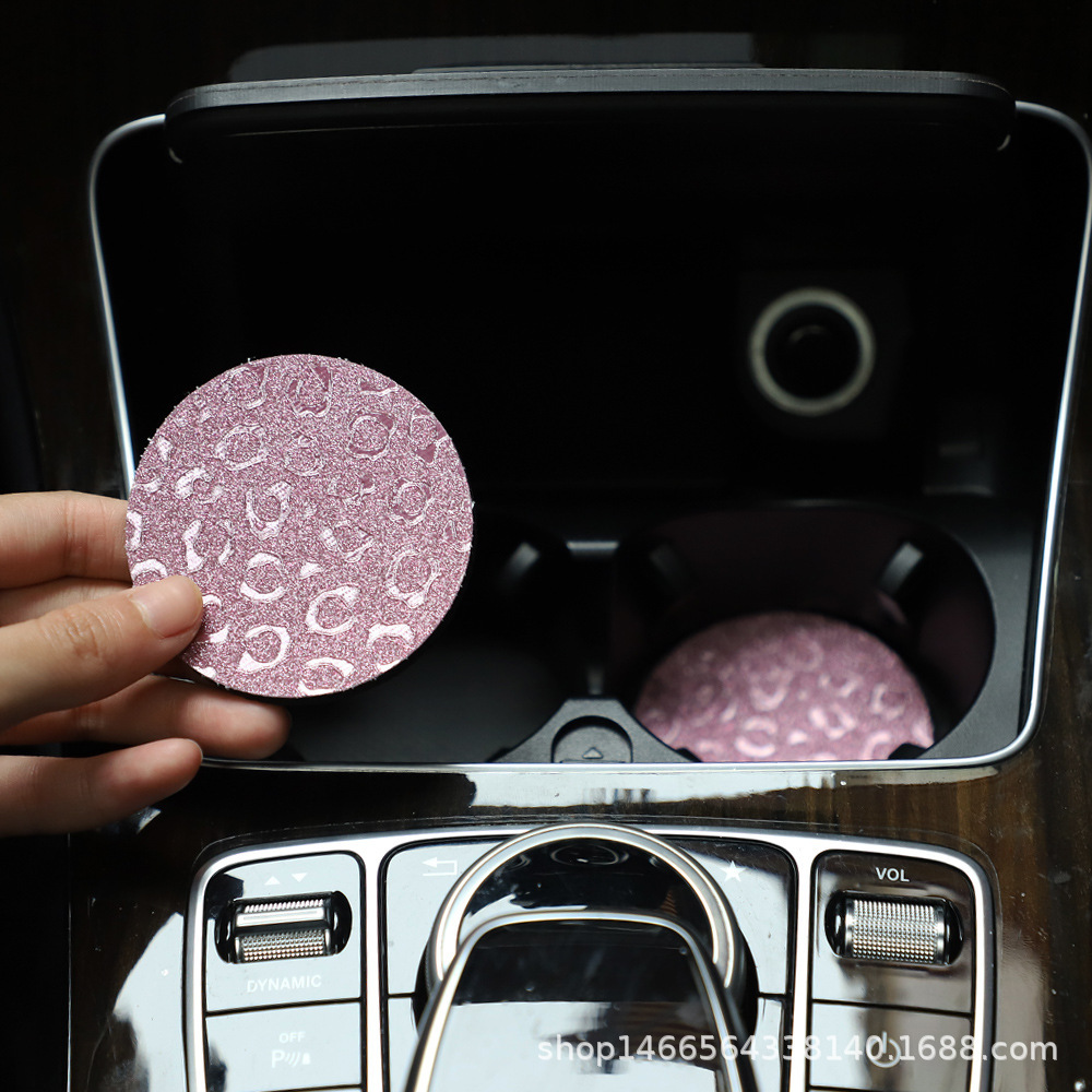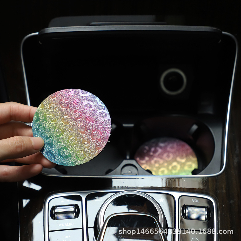 플래시 골드 레오파드 무늬 라운드 카 티 컵 매트 자동차 안티 슬립 매트 사계절 일반 자동차 인테리어 액세서리 크로스 보더 페어스토어 가기