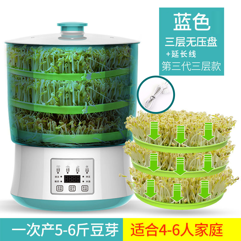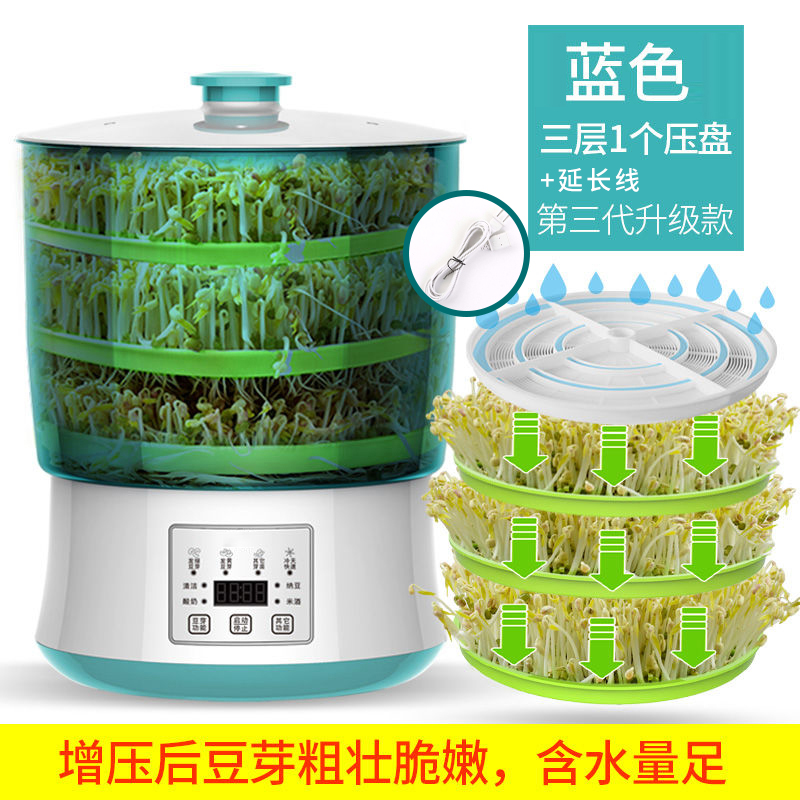 콩 콩나물 기계 자동 가정용 지능형 콩나물 기계 대용량 발아 기계 수제 작은 녹두 새싹 묘목 관개 냄비스토어 가기