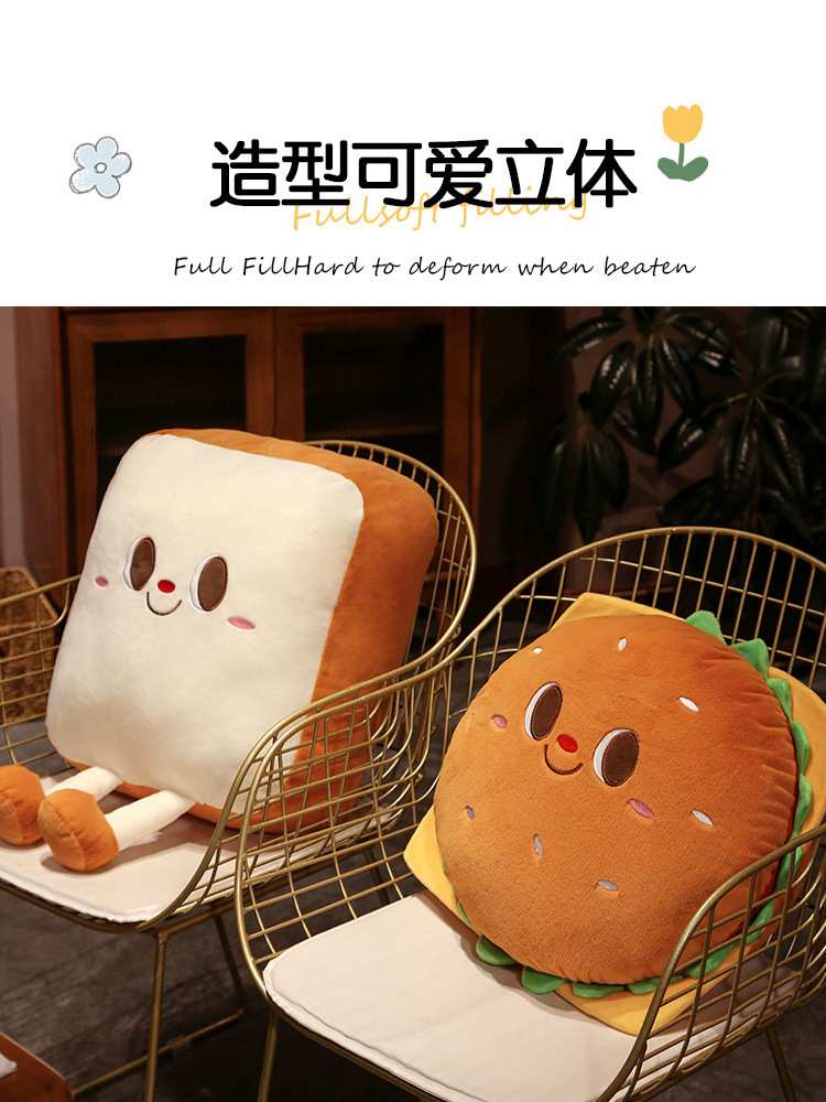 实拍图,可爱造型的面包汉堡抱枕,可以当抱枕,可以当摆件。满足不同的需求。