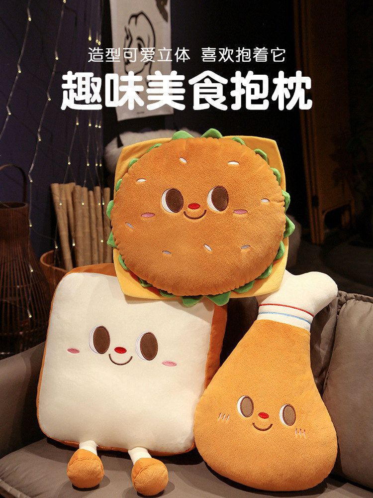국경 간 뜨거운 판매 창조적 인 함부르크 닭 다리 토스트 빵 베개 봉제 장난감 소녀의 베개 침실 소파스토어 가기