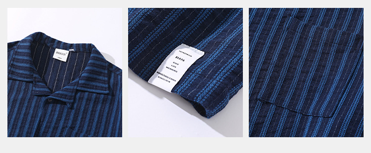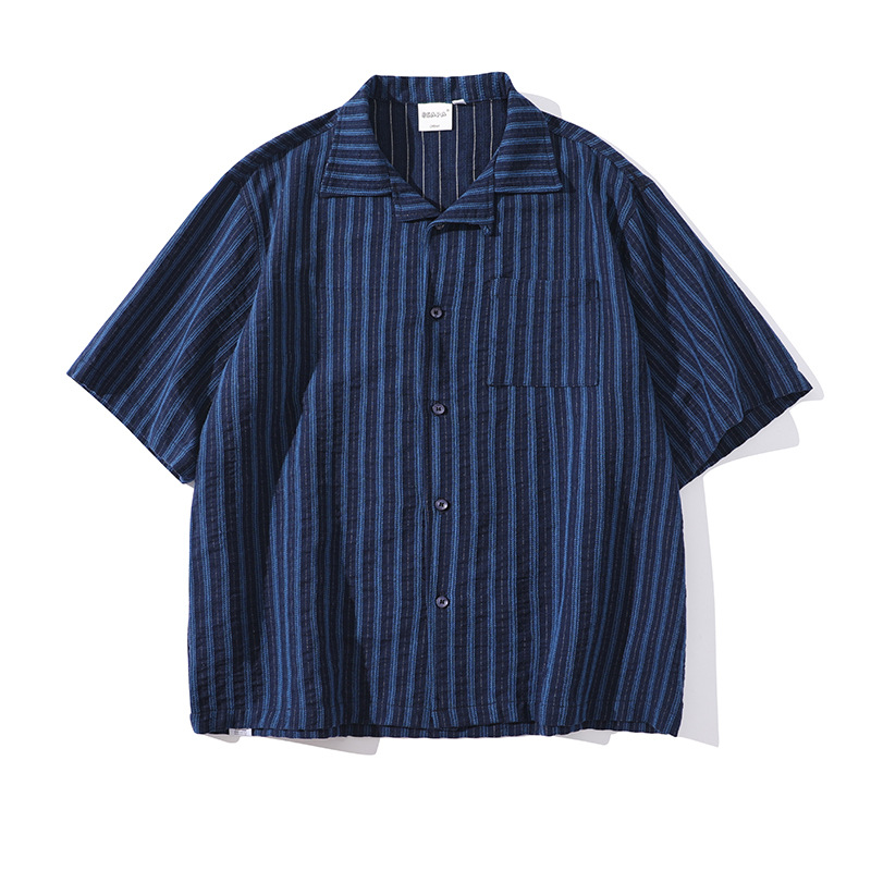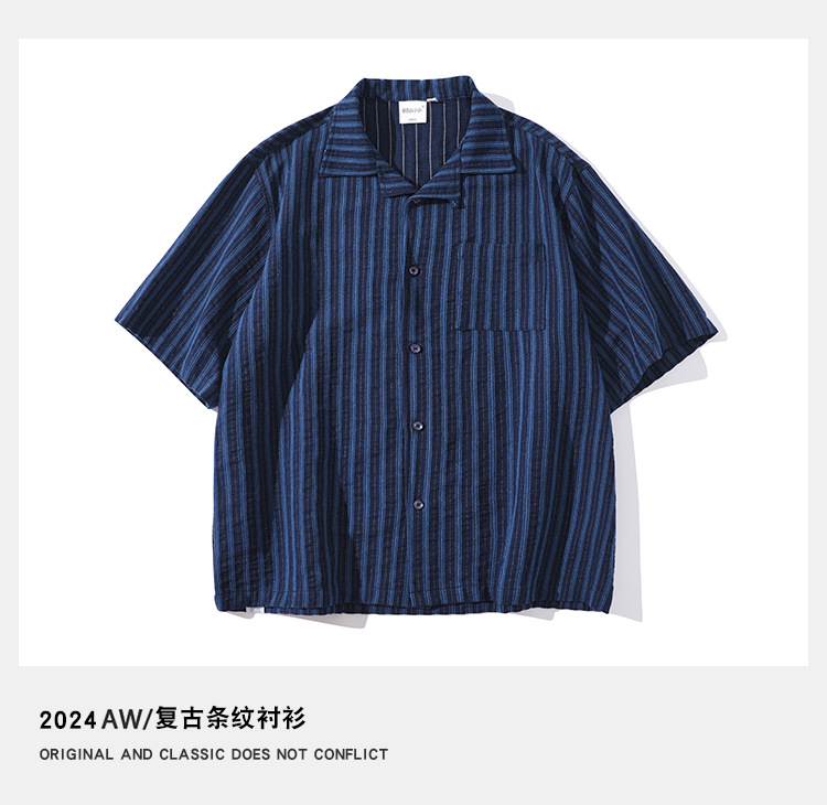 시티 팬핀 2024 여름 새로운 일본 스타일 레트로 스트라이프 쿠바 칼라 캐주얼 여름 셔츠 남자스토어 가기