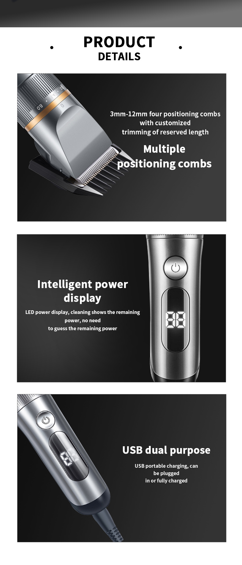 지능형 디지털 디스플레이 USB 충전식 전기 오일 헤드 클리퍼 방수 전기 클리퍼가있는 국경 간 전기 헤어 클리퍼