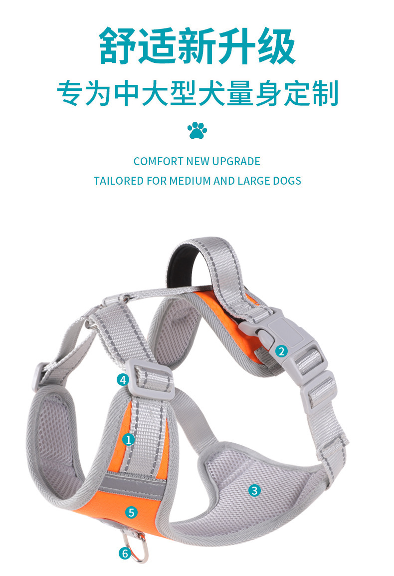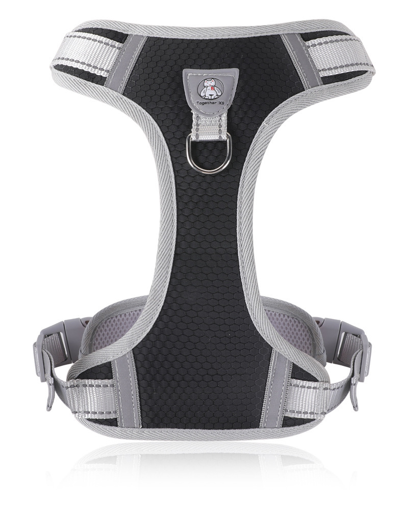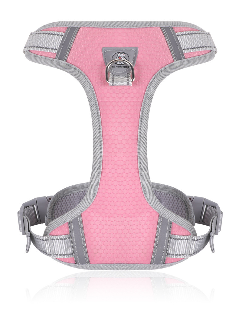 국경 간 새로운 안티 브레이크 통기성 애완 동물 가슴 스트랩 개 나가는 반사 안전 견인 벨트 조끼 스타일 가슴 보호