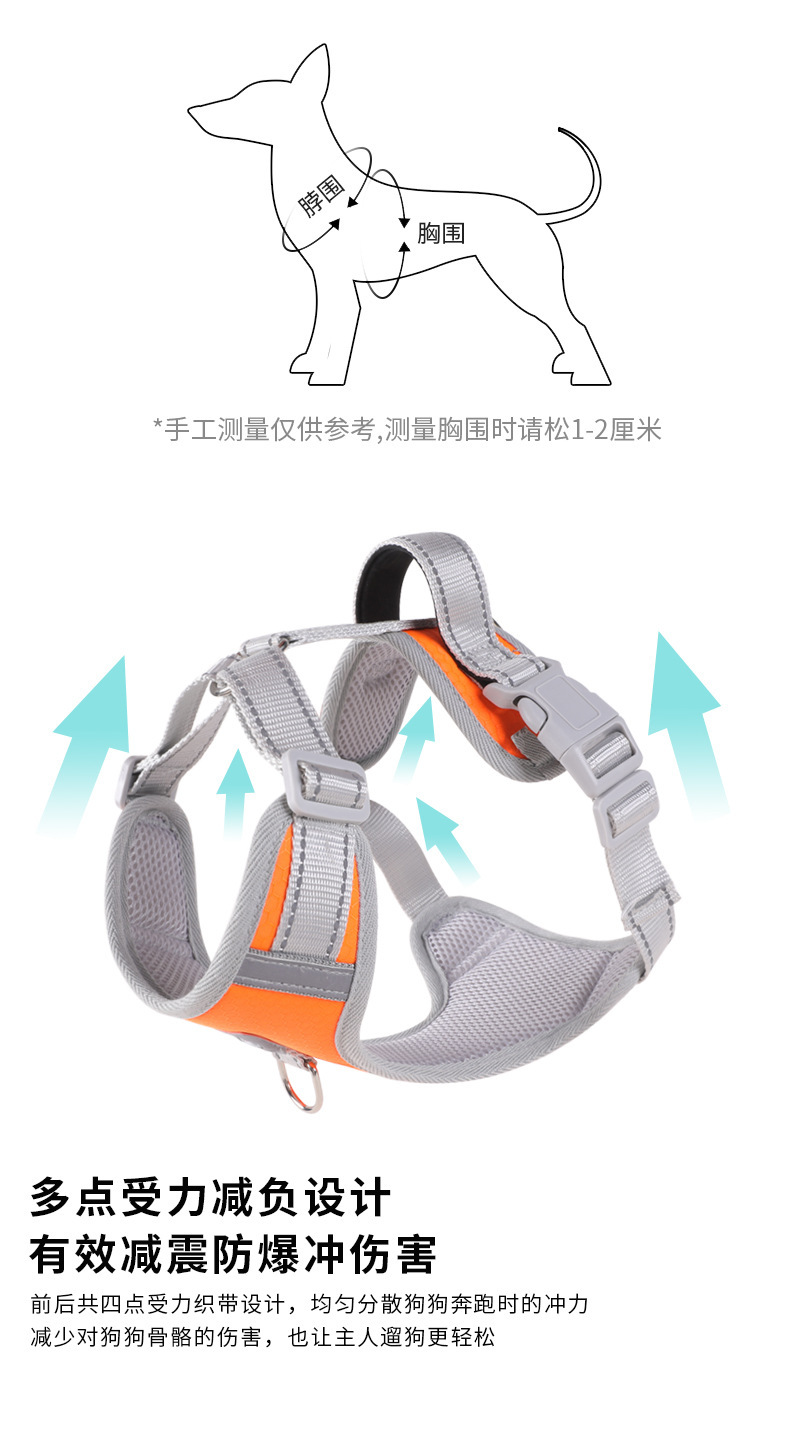 국경 간 새로운 안티 브레이크 통기성 애완 동물 가슴 스트랩 개 나가는 반사 안전 견인 벨트 조끼 스타일 가슴 보호스토어 가기