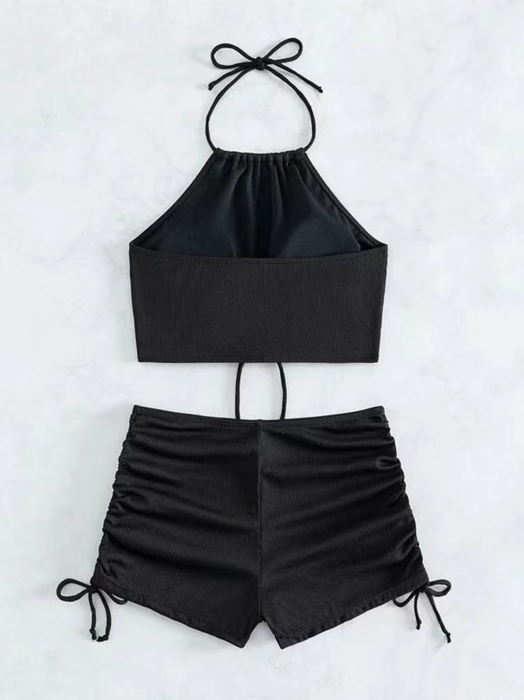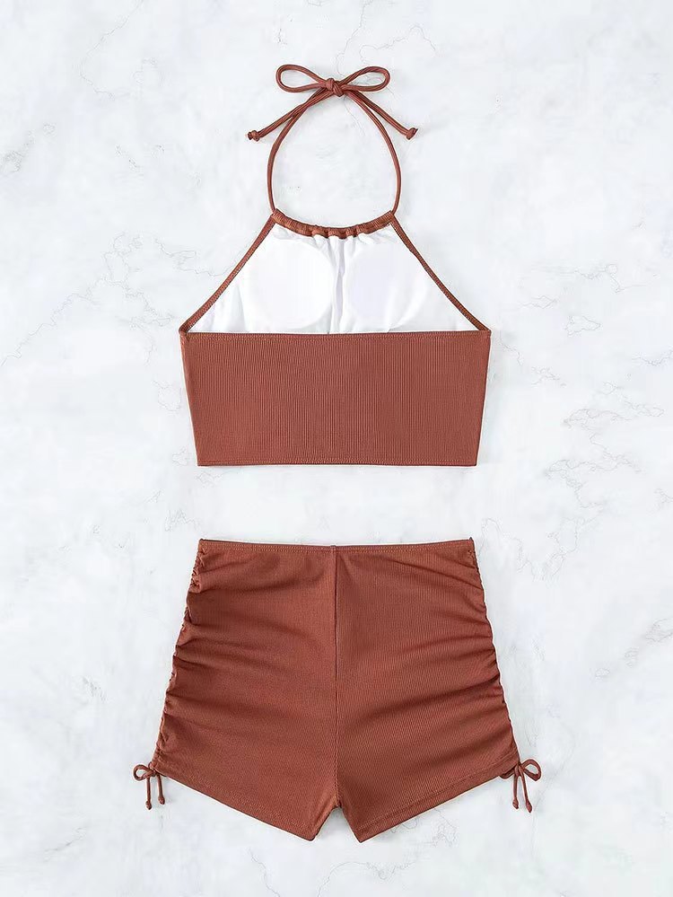 스플릿 수영복 여성용 하이 엔드 백리스 복서 수영 트렁크 교수형 넥 티더 백리스 훌루다오 수영복 수영복